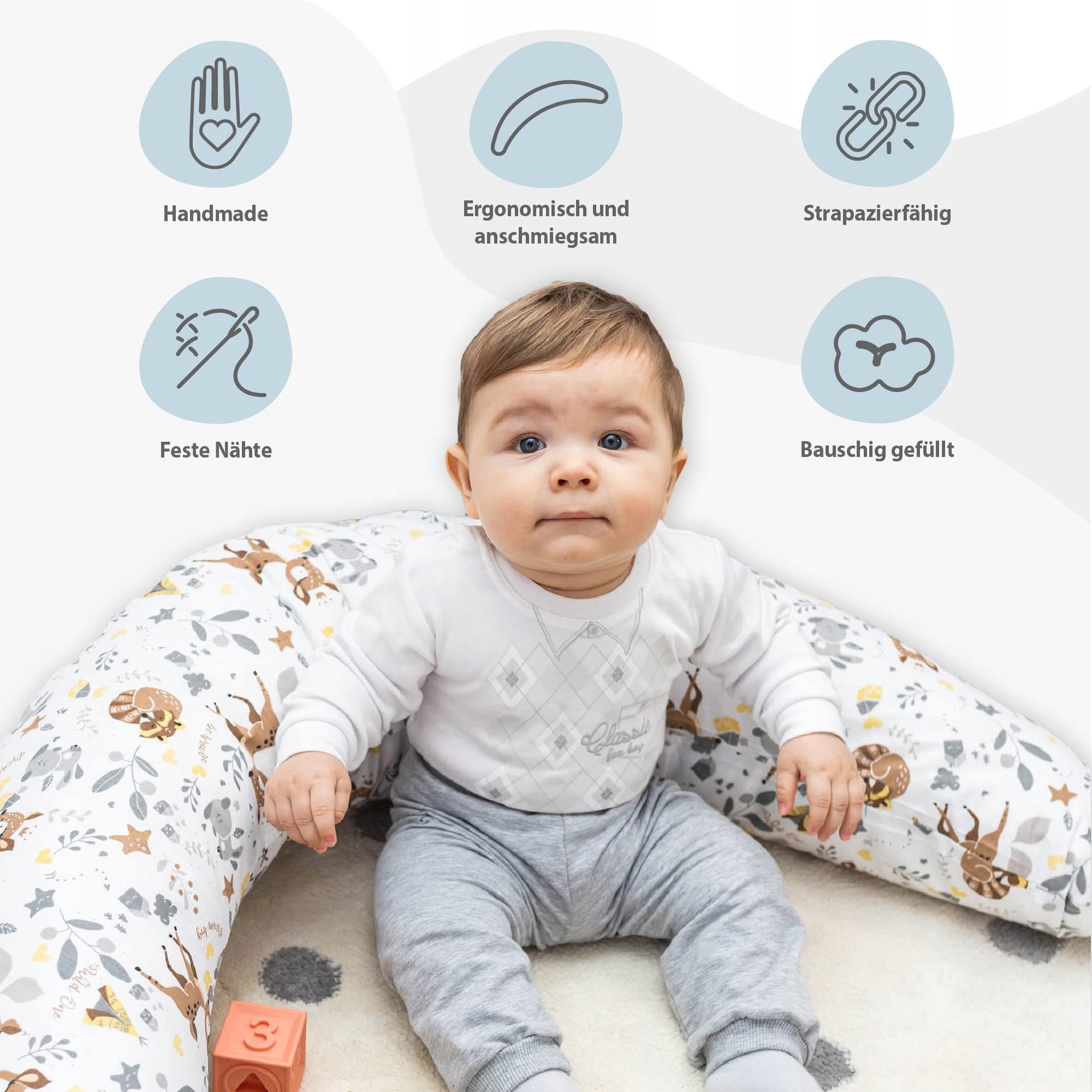 Kocyk dla niemowląt Totsy XXL Poduszka do karmienia Poduszka dla kobiet w ciąży Poduszka do podparcia - Bawełna Poduszka ciążowa dla dorosłych - 190 cm Jeleń