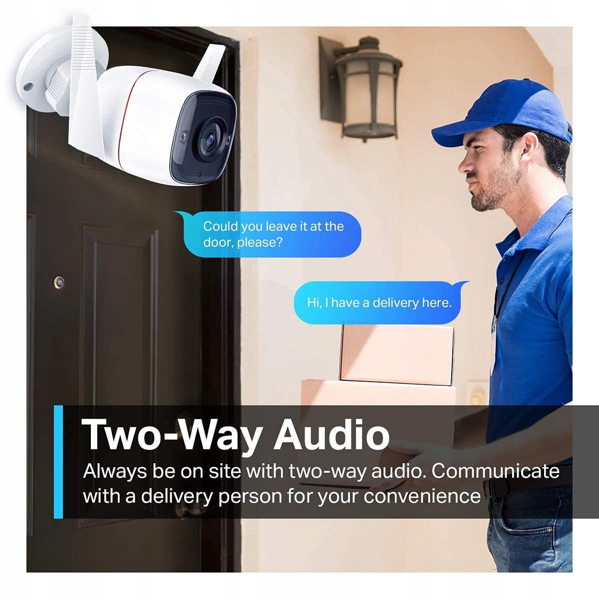 Kamera monitorująca TP-Link Tapo C310 na zewnątrz, kamera IP WLAN, 3MP wysoka rozdzielczość, 30m nocne widzenie, wykrywanie ruchu, wodoodporność IP66, powiadomienia alarmowe, audio dwukierunkowe, wspiera Alexę i Google Asystenta