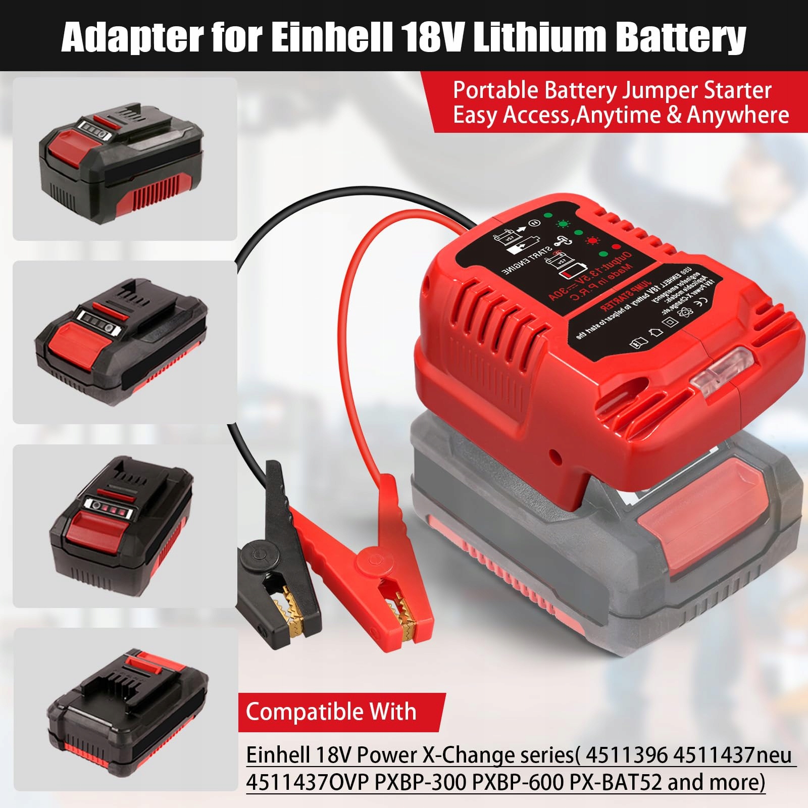 TPDL Auto-rozruch dla Einhell PXC Akumulator 18V Li-Ion, adapter rozruchowy do samochodów 12 V z silnikiem 3,5 litra, z kablem 11 AWG i zestawem zacisków (bez akumulatora)