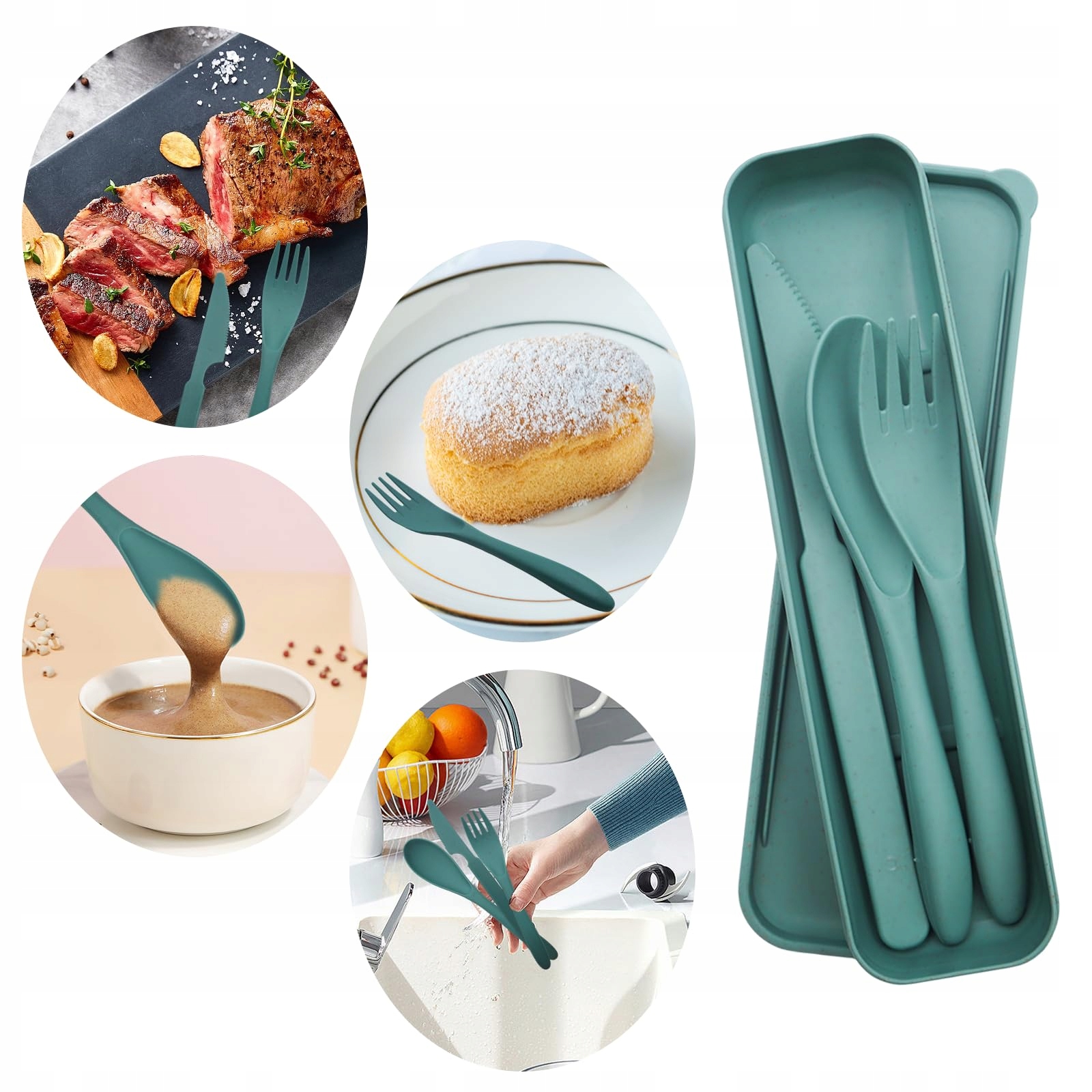 🍀Łatwe Do Noszenia: Ten zestaw sztućców plastikowych jest mały i lekki, przenośna plastikowa obudowa jest wodoodporna i pyłoszczelna, łatwa do przechowywania i transportu, można ją włożyć do torebki, tornistra, torby na lunch.