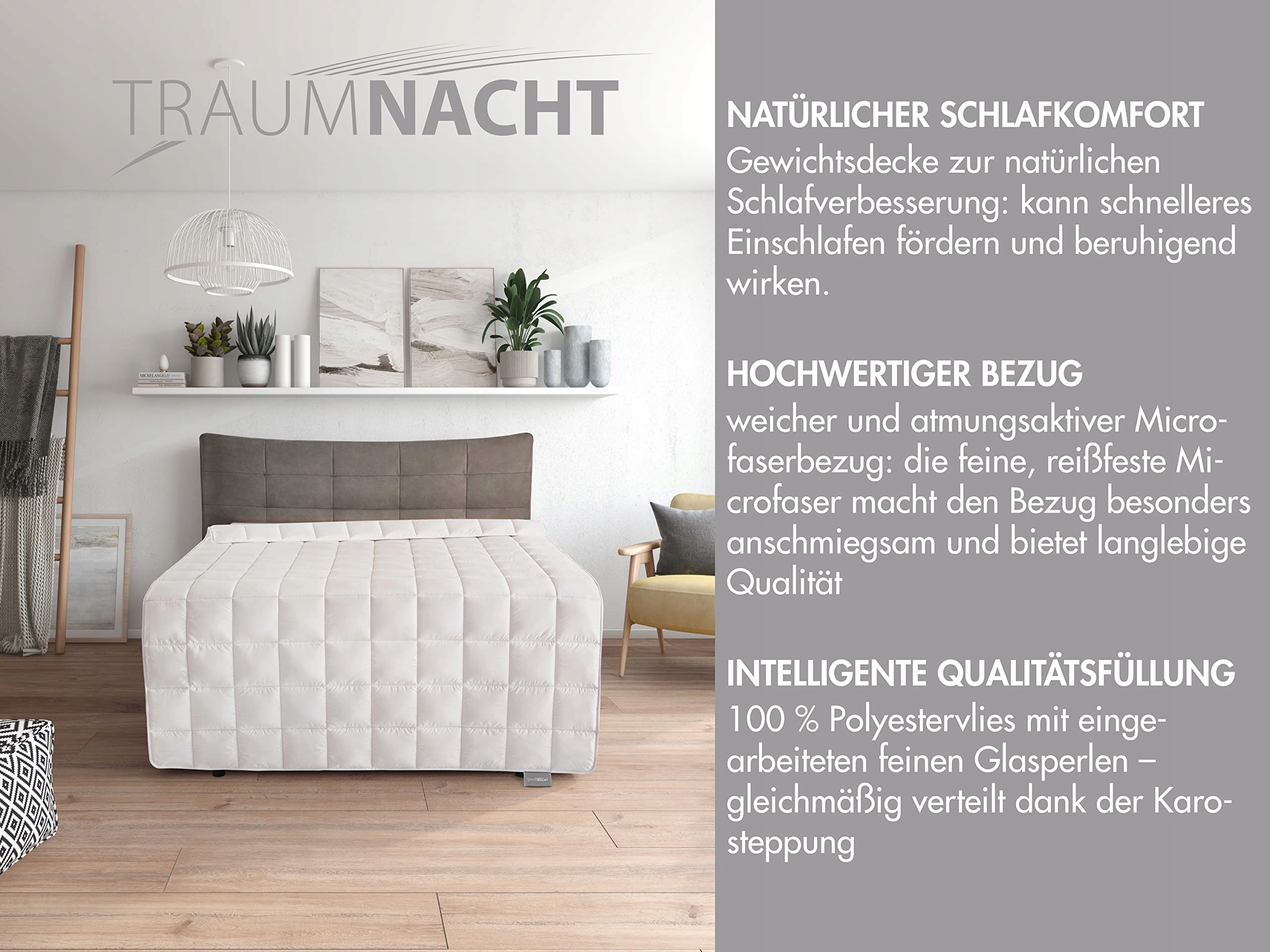 Koc relaksacyjny Traumnacht, 155 x 220 cm, certyfikowany przez Öko-Tex, koc obciążeniowy 9 kg do uspokojenia i redukcji stresu, zalecany dla dorosłych, opracowany w Niemczech