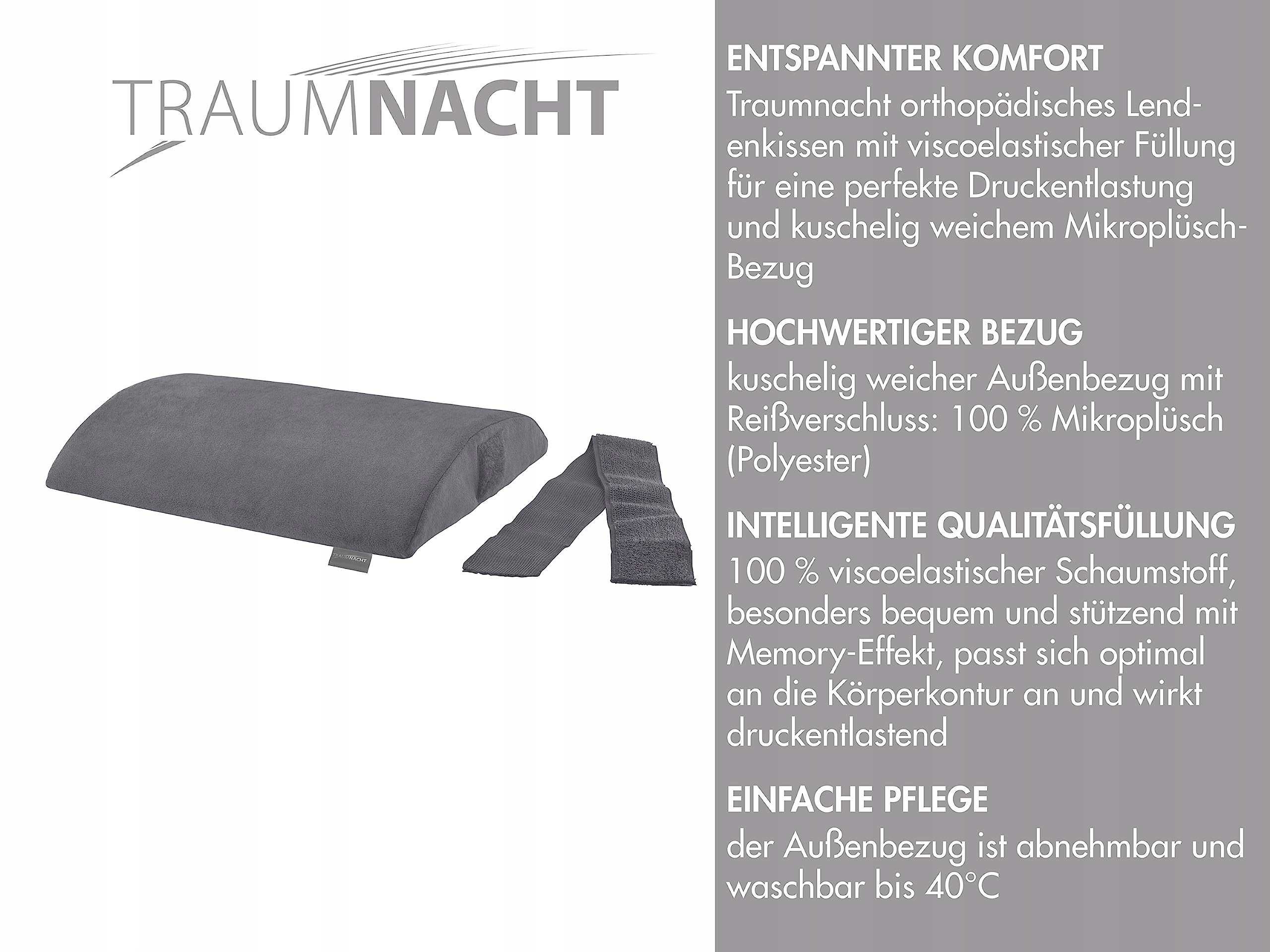 RELAXUJĄCY KOMFORT - ortopedyczna poduszka lędźwiowa Traumnacht z wypełnieniem viscoelastycznym dla doskonałego odciążenia z miękkim pokryciem z mikropoliesteru