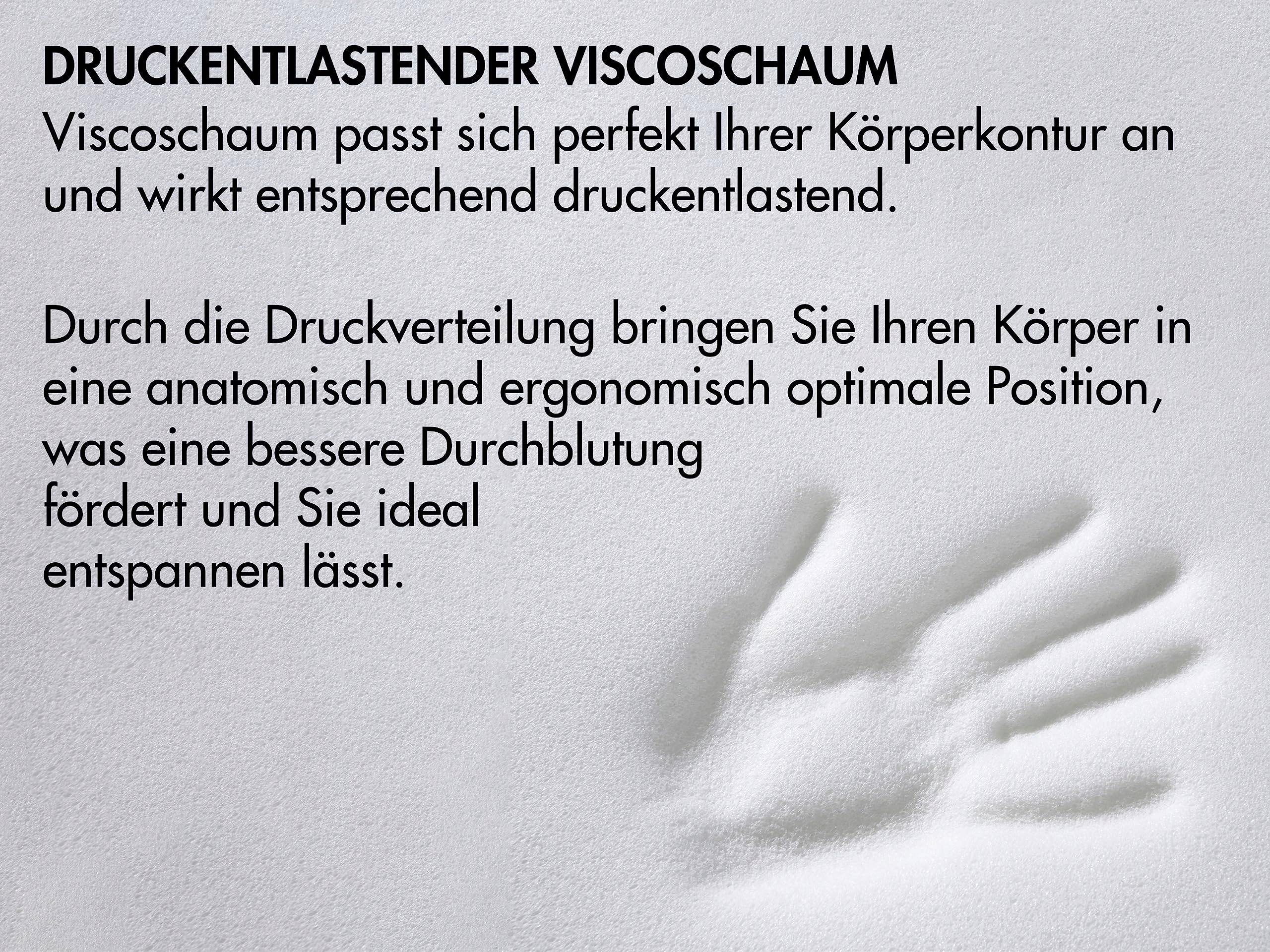 INTELIGENTNE WYPEŁNIENIE JAKOŚCIOWE - 100% pianka viscoelastyczna, szczególnie wygodna i wspierająca z efektem pamięci, idealnie dopasowuje się do konturów ciała i działa odciążająco