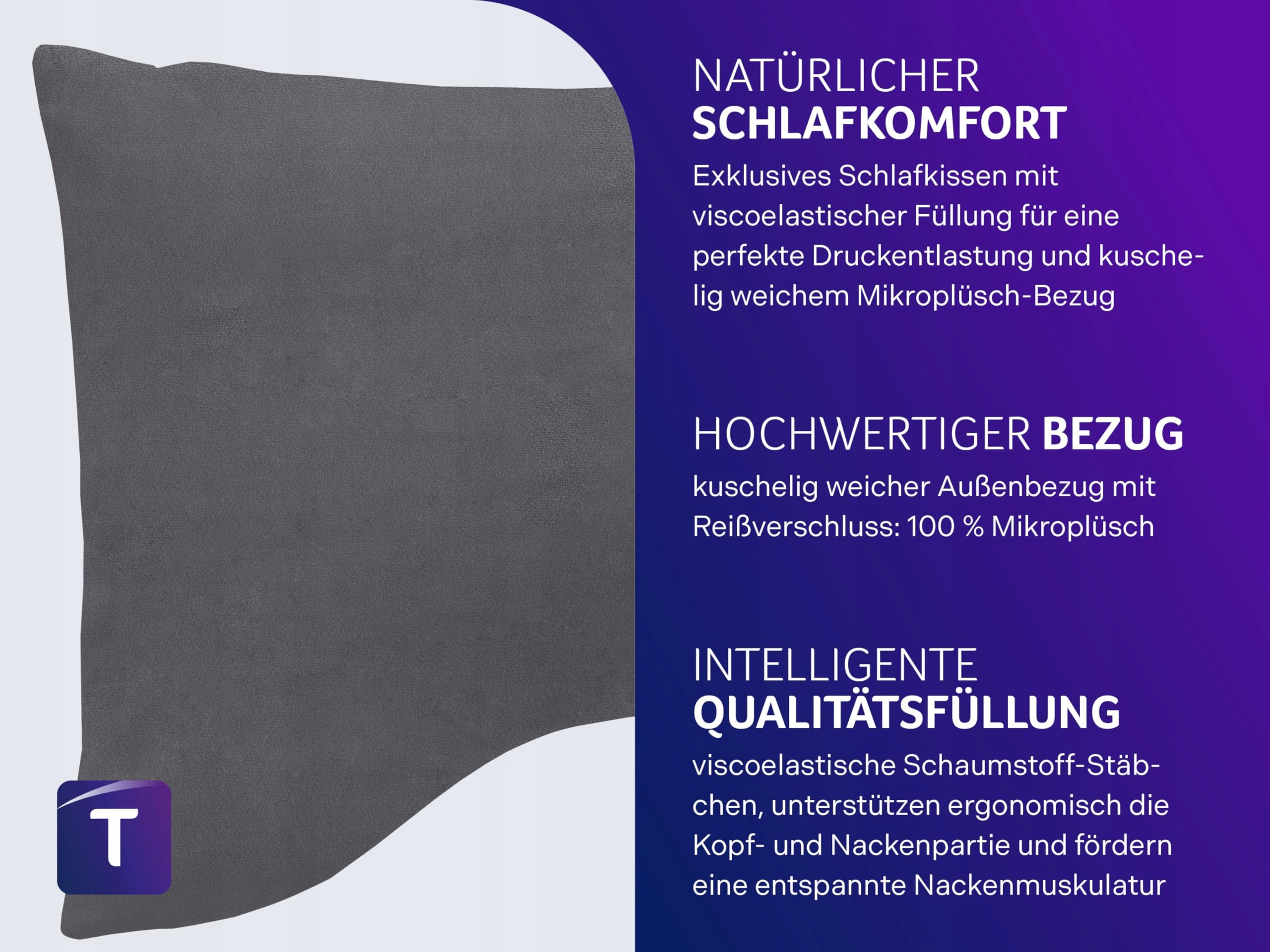 NATURALNY KOMFORT SNU - Ekskluzywna poduszka do spania z wypełnieniem viscoelastycznym dla idealnego odciążenia nacisku z miękkim, pluszowym pokrowcem