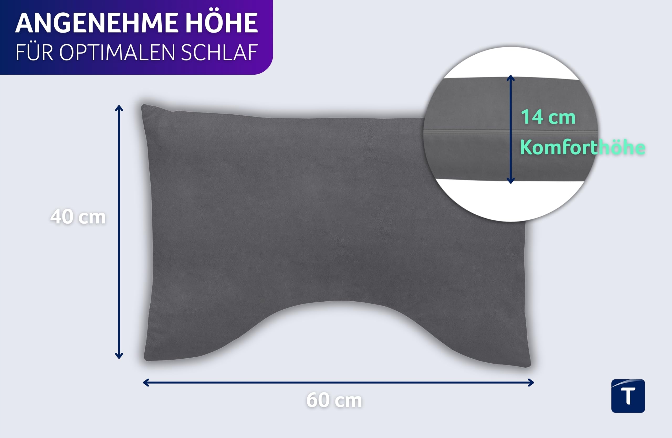 Traumnacht Exklusiv Poduszka do spania specjalna z pianką viscoelastyczną odciążającą nacisk, 40 x 60 cm, szara, certyfikat Öko-Tex, produkowana zgodnie z niemieckim standardem jakości