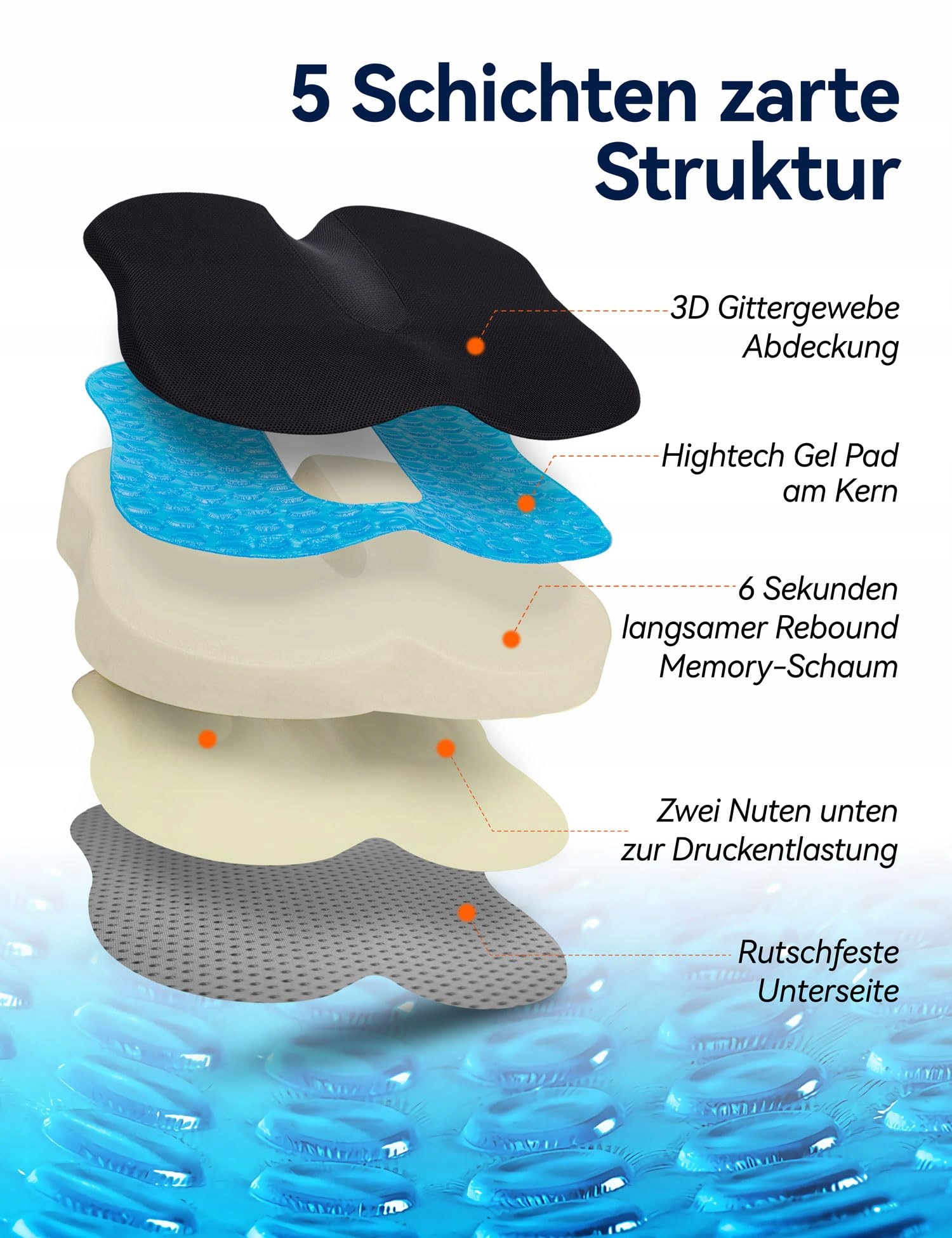 Ergonomiczny motylkowy design: Poduszka na siedzenie TravelEase z pianki memory posiada innowacyjny ergonomiczny kształt motyla, który idealnie dopasowuje się do bioder. V-kształtny tylny wycięcie skutecznie zapobiega bezpośredniemu naciskowi twardego krzesła, podczas gdy dwie szczeliny na spodzie pomagają równomiernie rozłożyć ciężar ciała, poprawiając komfort podczas długiego siedzenia.