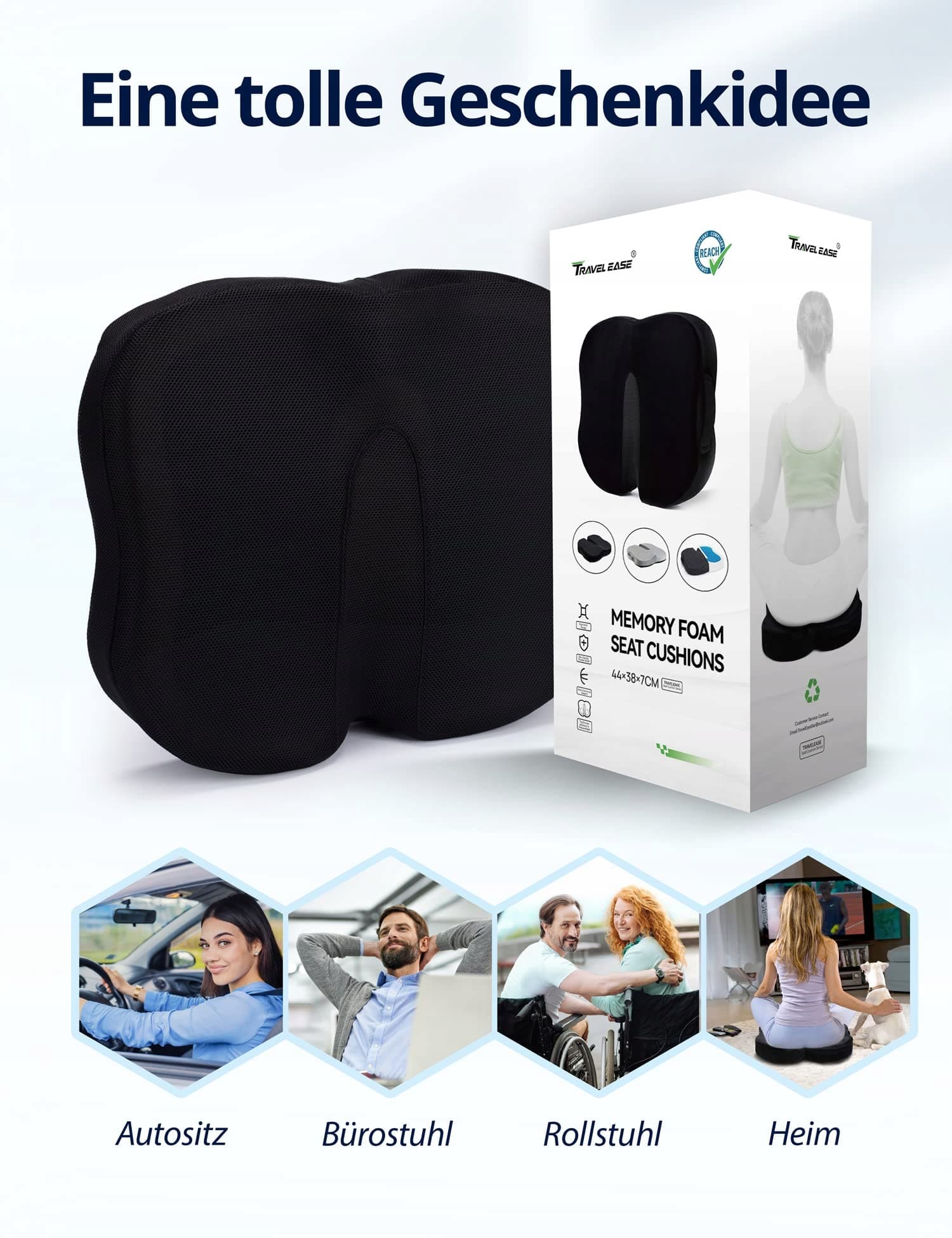 Ulepszone doświadczenie siedzenia: Ciesz się natychmiastową poprawą komfortu siedzenia dzięki poduszce TravelEase, która dopasowuje się do Twojego ciała i zapewnia osobisty komfort. Oferuje doskonałe i trwałe wsparcie dla pośladków, zapewniając, że każda chwila siedzenia jest przyjemna. Idealna dla osób spędzających długie godziny przy biurku lub po prostu chcących poprawić komfort siedzenia.