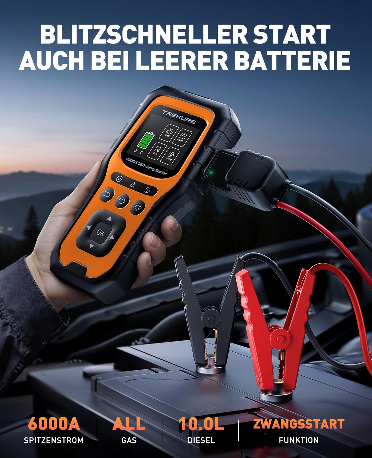 【All-in-One rozruch i urządzenie diagnostyczne】TREKURE TK40 powerbank rozruchowy, urządzenie diagnostyczne OBD2, tester akumulatora samochodowego, przenośny powerbank i światło LED w jednym kompaktowym urządzeniu – zastępuje tym samym kilka pojedynczych urządzeń naraz. Dzięki temu możesz w trasie odczytywać dane pojazdu, lepiej klasyfikować błędy i niezawodnie uruchomić samochód w nagłych wypadkach. Szczególnie korzystny pakiet dla wszystkich kierowców, którzy szukają bezpiecznego rozwiązania do pomocy przy awariach, diagnostyki pojazdu, zasilania i silnej mocy rozruchowej.