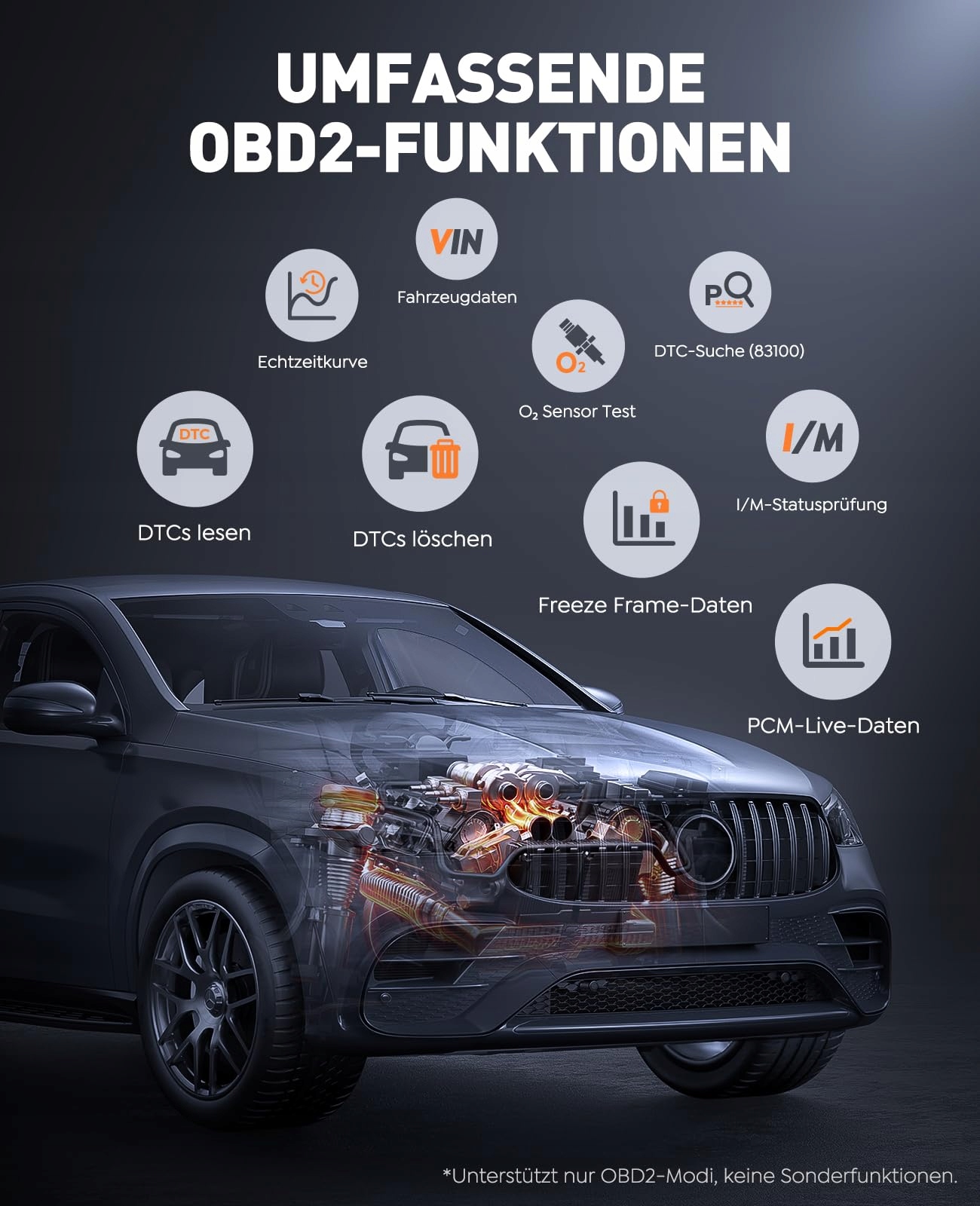 【Diagnostyka OBD2 – kompatybilna i wielojęzyczna】Wbudowane urządzenie diagnostyczne OBD2 odczytuje kody błędów, kasuje kontrolki ostrzegawcze (np. kontrolkę silnika) i wyświetla ważne dane pojazdu, takie jak napięcie czy dane silnika w czasie rzeczywistym. Obsługuje kilka języków (w tym niemiecki), co sprawia, że proces diagnostyki jest prosty i łatwy do zrozumienia. Idealne do szybkiej oceny stanu pojazdu, uzyskania jasności przed wizytą w warsztacie lub regularnego sprawdzania danych pojazdu.