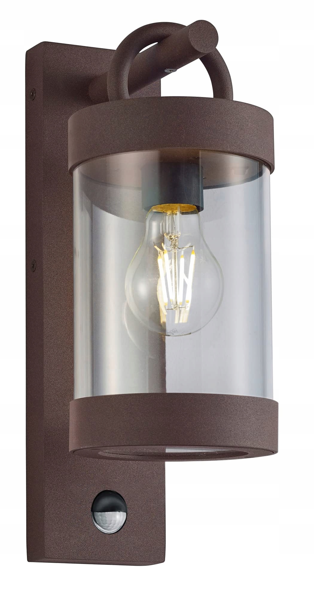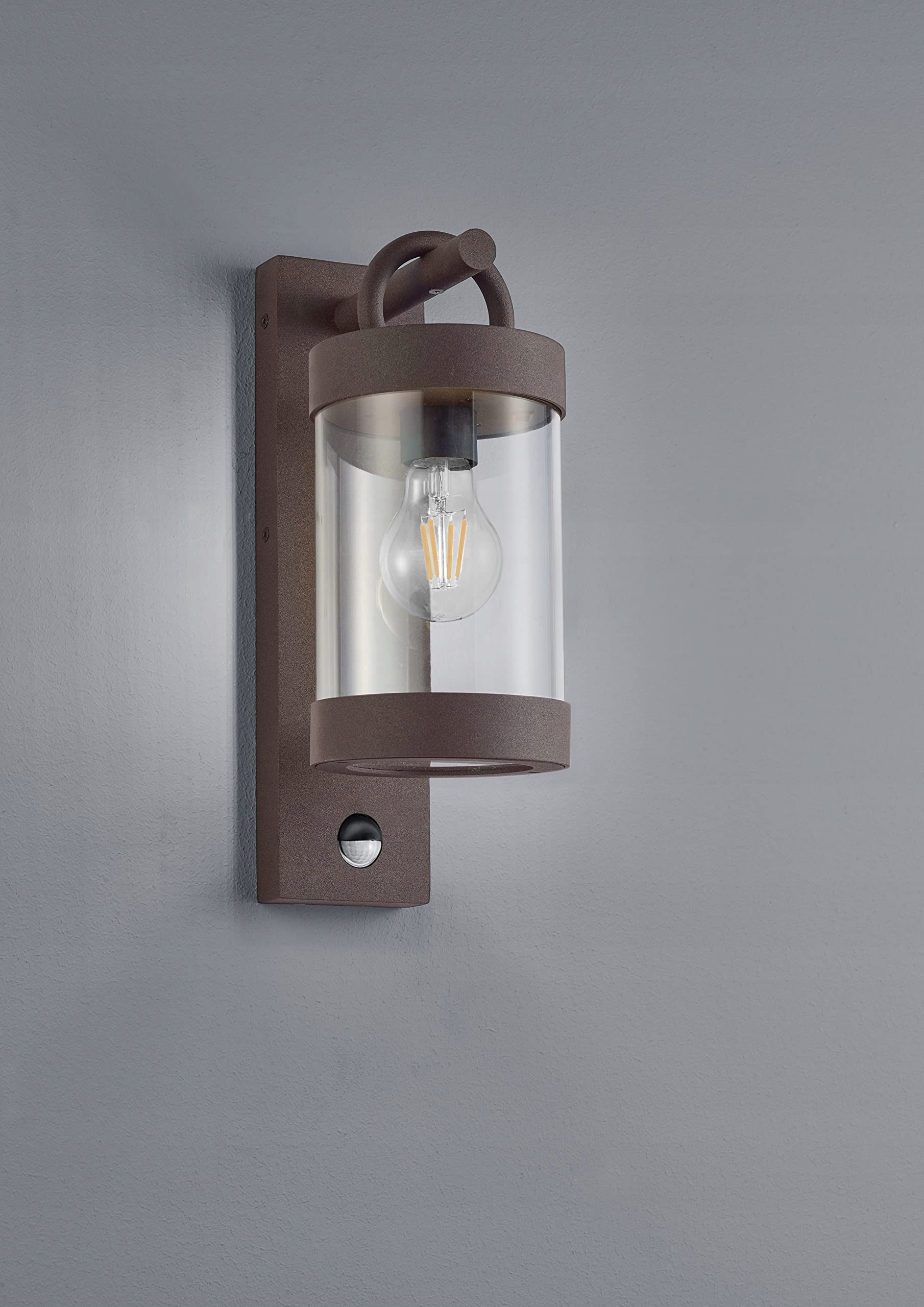 Trio Leuchten Zewnętrzna lampa ścienna Sambesi 204169124, odlew aluminiowy w kolorze rdzy, przezroczysty akryl, bez żarówki 1x E27, czujnik ruchu