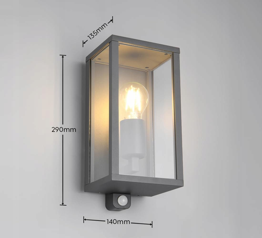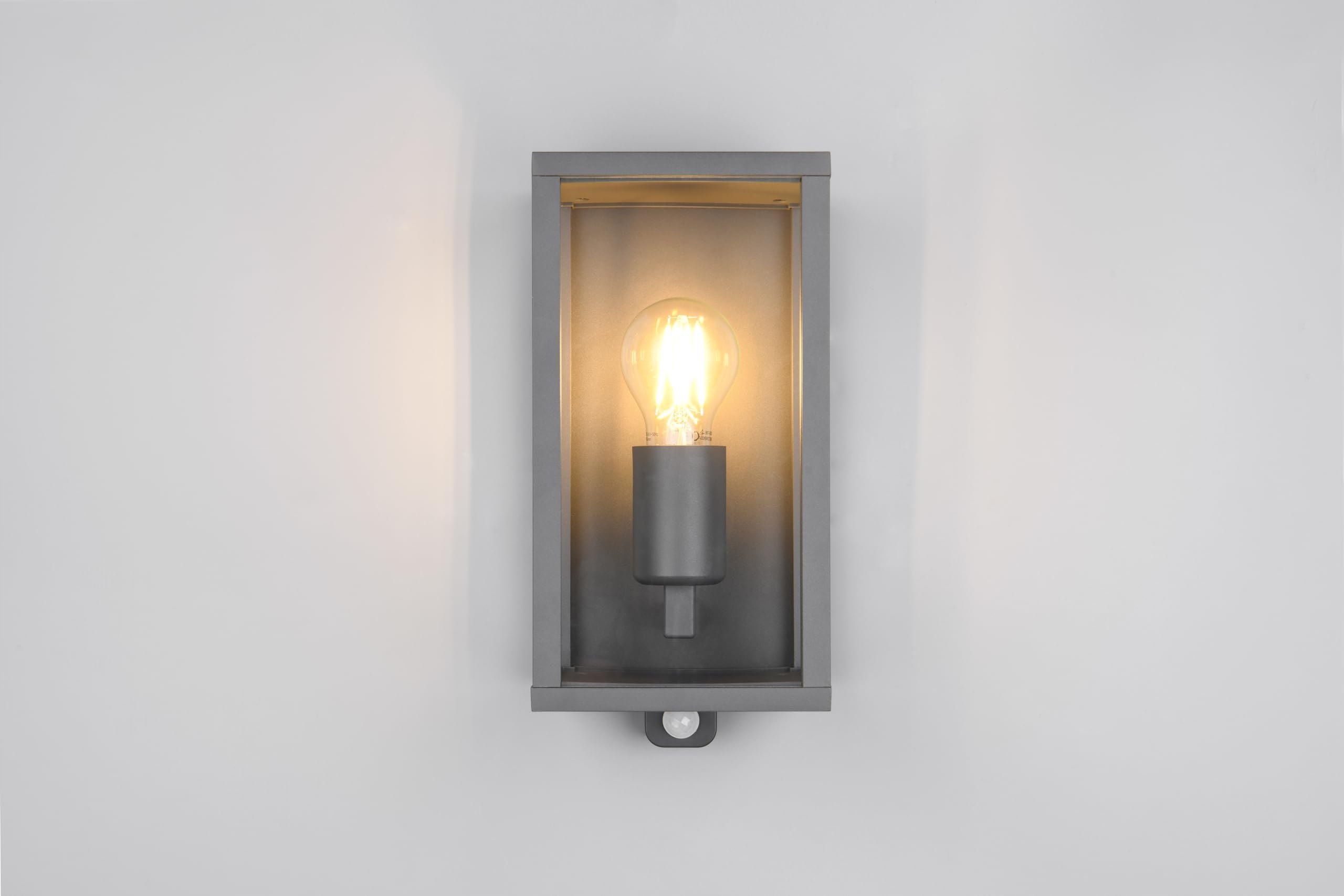 Trio Leuchten Zewnętrzna Lampa Ścienna Garonne 201869142, Odlew Aluminium Antracyt, Szkło Przezroczyste, bez 1x E27, Czujnik Ruchu
