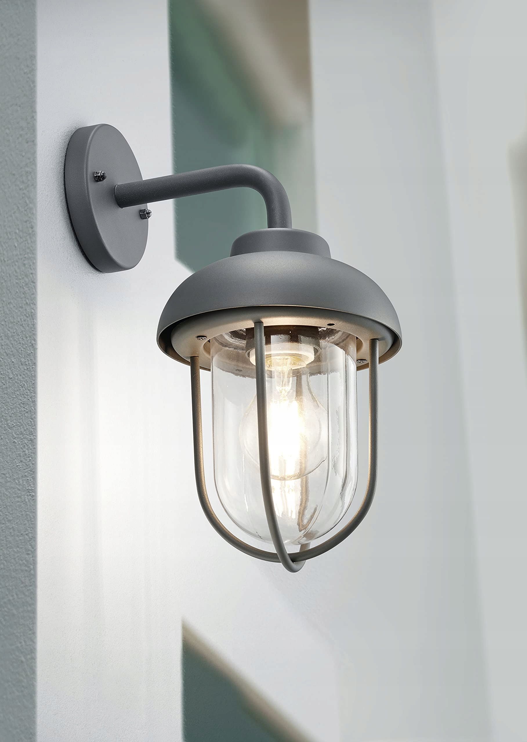 Zewnętrzna lampa ścienna Duero jednopłomienna, wysokiej jakości i wytrzymały odlew aluminiowy w kolorze antracyt z przezroczystym szkłem