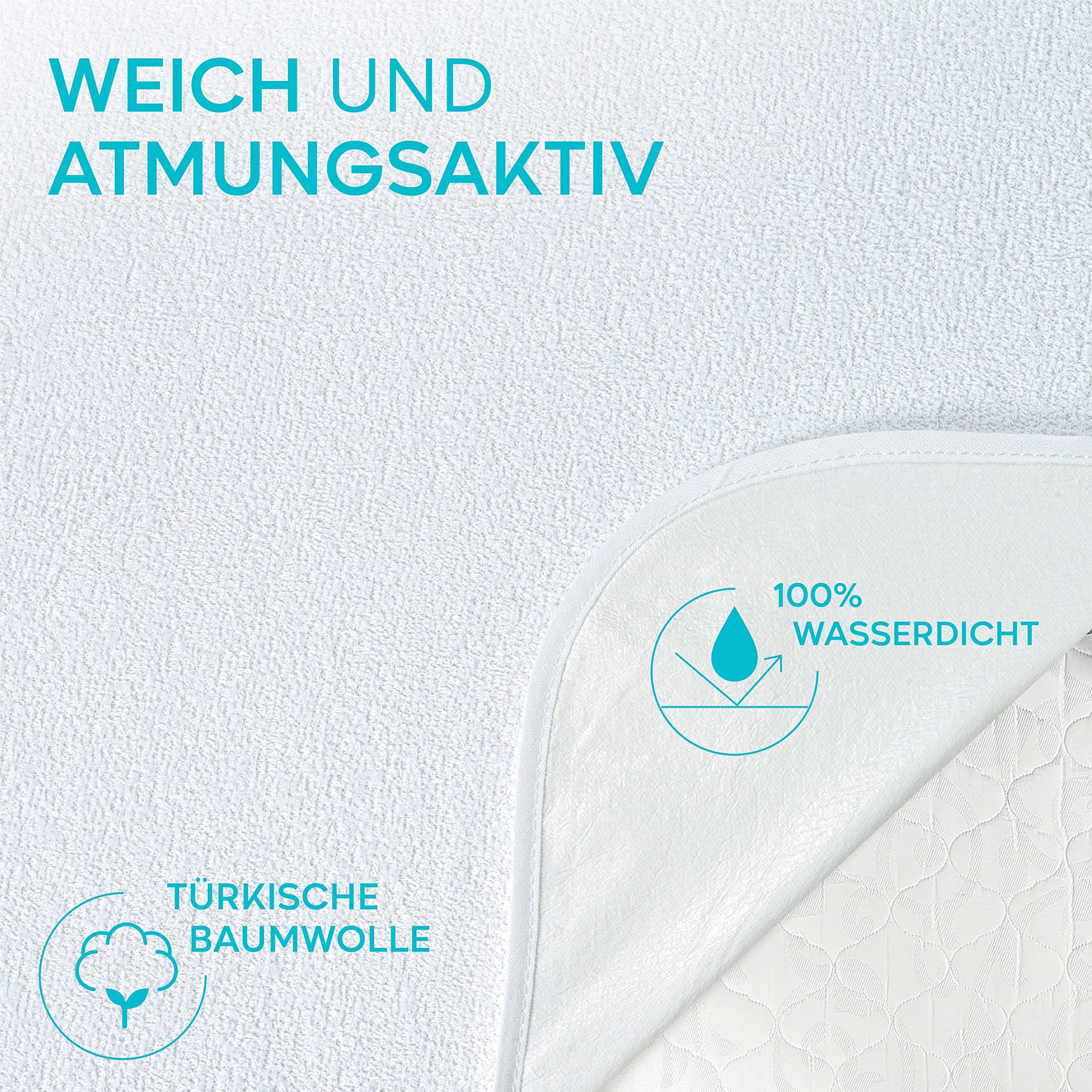WODOODPORNY I ODDYCHAJĄCY POKROWIEC NA MATERAC - Pokrowiec na materac jest w 100 % wodoodporny i chroni przed wilgocią, kurzem, potem, moczem i innymi cieczami: Podaruj swojemu materacowi długie życie i oszczędzaj pieniądze w dłuższej perspektywie. Podane wymiary odnoszą się do rozmiaru materaca. Wymiary pokrowca mogą różnić się o kilka centymetrów dla optymalnego dopasowania.