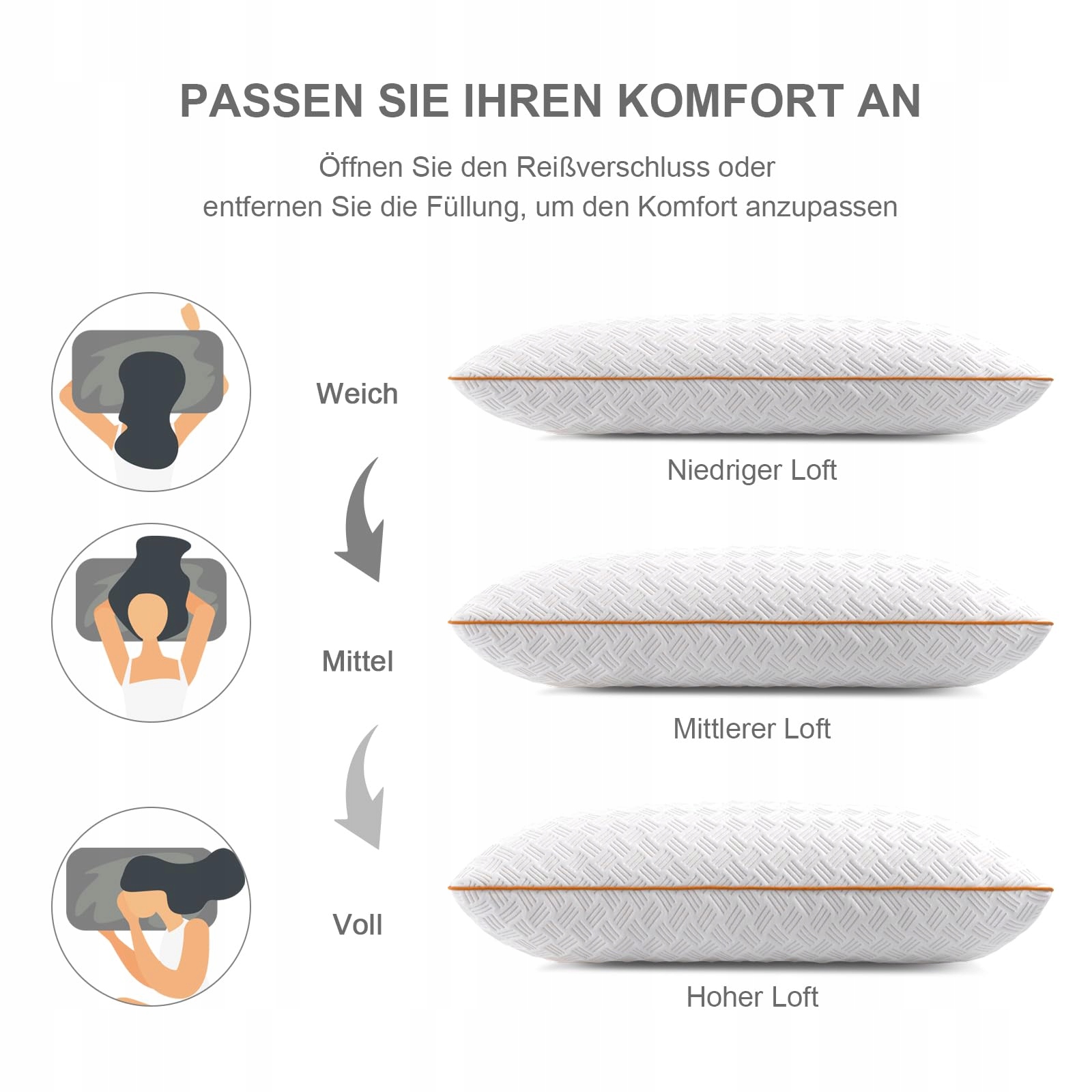 Indywidualna regulacja dla komfortu: Nasza poduszka umożliwia łatwą regulację wypełnienia, aby osiągnąć idealną wysokość i miękkość. Odpowiednia dla śpiących na boku, plecach lub brzuchu, zapewnia spersonalizowane doświadczenie snu