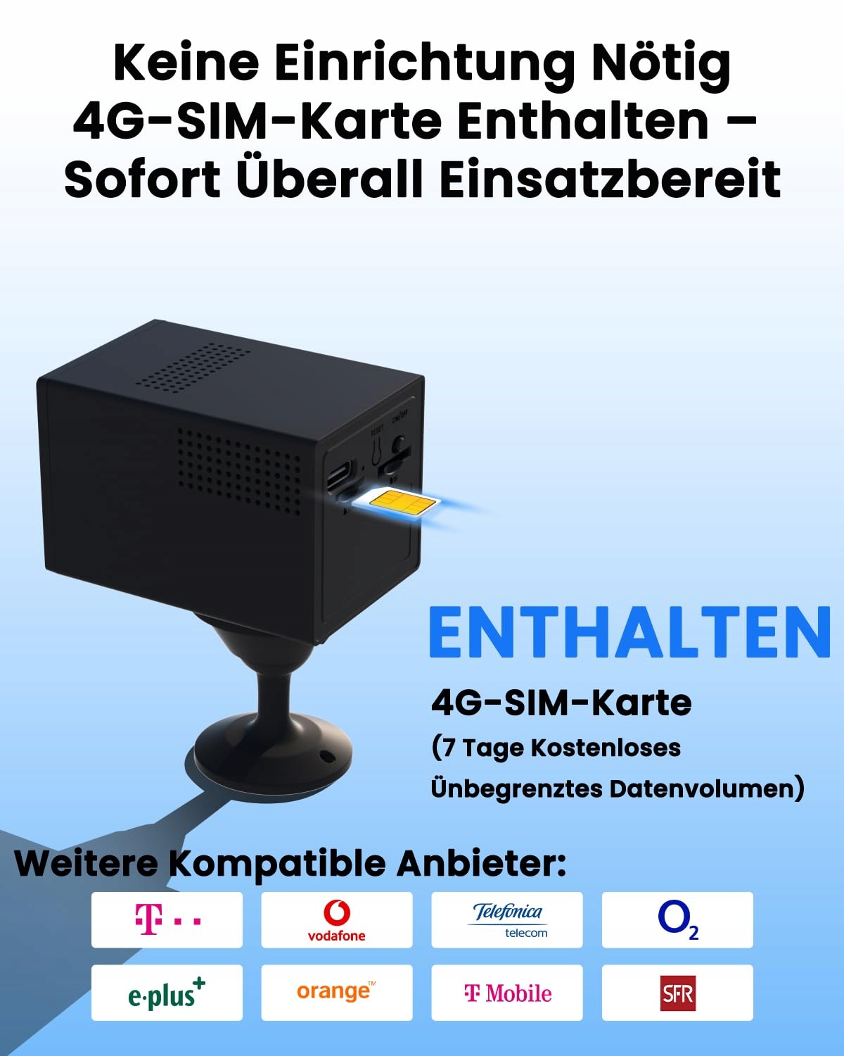 【Z 4G SIM, Plug & Play】Z kartą SIM 4G i 7 dniami darmowego, nielimitowanego transferu danych – wystarczy ją włożyć, połączyć z aplikacją i od razu korzystać z mobilnego monitoringu. Po 7-dniowym okresie próbnym możesz łatwo wykupić nielimitowany pakiet danych przez aplikację, bez limitów danych, bez potrzeby Wi-Fi. Działa także z dużymi operatorami jak Telekom, Vodafone, O2, SFR, Bouygues, Orange i TIM, co daje elastyczność wyboru najlepszej sieci dla Twojego regionu.