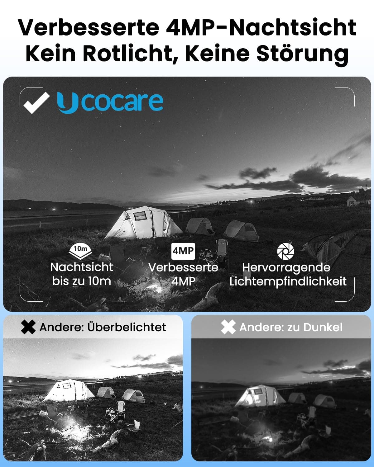 【Bądź bezpieczny wszędzie – wytrzymały akumulator 5200mAh】Wyposażona w mocny, ładowalny akumulator 5200mAh – 10 razy większą pojemność niż większość mini kamer – kamera UCOCARE bez Wi-Fi zapewnia prawdziwe, długotrwałe bezpieczeństwo. Idealna do dłuższego użytkowania w odległych miejscach, w podróży lub w środowiskach bez dostępu do sieci. W połączeniu z inteligentną technologią oszczędzania energii oznacza to mniej ładowania, mniej wysiłku i więcej bezpieczeństwa, gdziekolwiek jesteś.