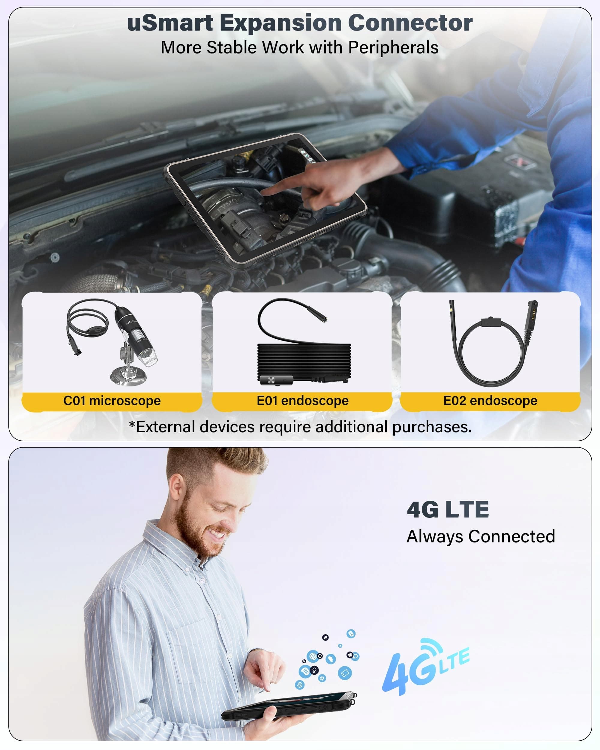【10.200mAh + ładowanie zwrotne + Super Latarka】Ulefone RugKing Pad 2 Pro outdoorowy tablet posiada potężną baterię 10.200mAh i oferuje jako wytrzymały tablet doskonałą wytrzymałość do 1428 godzin czasu czuwania, 70 godzin odtwarzania muzyki i 10 godzin odtwarzania wideo. Ten wodoodporny tablet działa również jako przenośny powerbank z funkcją ładowania zwrotnego dla smartfonów i słuchawek. Wbudowana Super Latarka (do 120 lumenów) aktywowana jednym klawiszem – przydatna podczas pracy nocnej i napraw. Stacja dokująca Pogo-Pin / podstawka i akcesoria uSmart dostępne osobno – idealne do zestawu tablet na budowę.