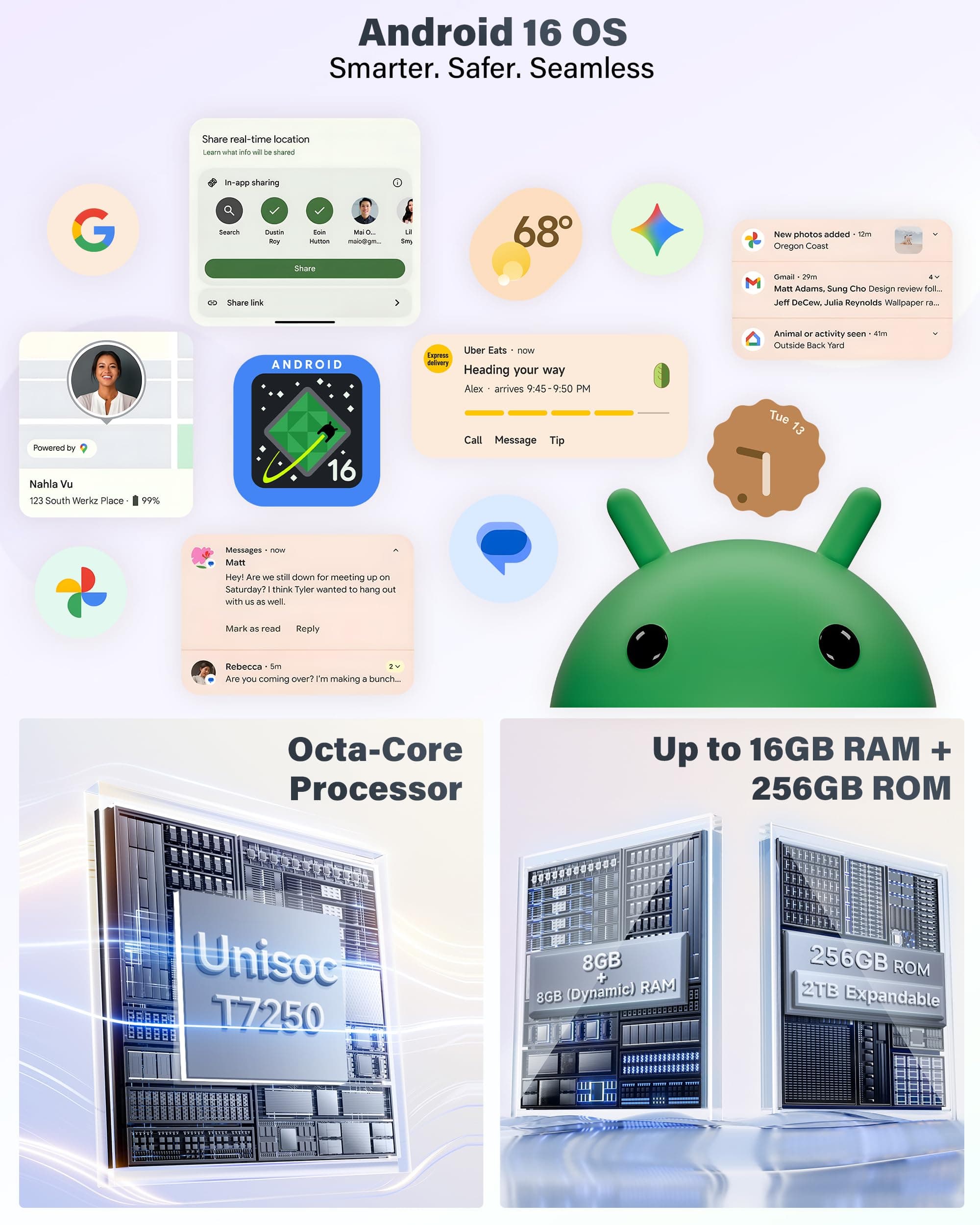 【Tablet Android 16 z 16GB+256GB】RugKing Pad 2 Pro outdoorowy tablet wytrzymały, wodoodporny jest napędzany przez Android 16 i procesor Unisoc T7250 Octa-Core, zapewniając płynne, responsywne doświadczenie użytkownika. 16 GB RAM (8 GB RAM + 8 GB dynamicznie rozszerzalne) umożliwia płynne wielozadaniowość i wymagające aplikacje. Z 256 GB pamięci ROM (lub opcjonalnie 128 GB) oraz możliwością rozszerzenia pamięci do 2 TB bez trudu przechowasz zdjęcia, filmy i więcej.