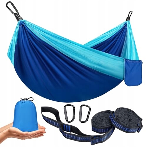 NYLONOWA TKANINA SPADOCHRONOWA: Hängematte outdoor wykonana jest z wysokiej jakości tkaniny nylonowej 210T, która charakteryzuje się doskonałą odpornością na zużycie, rozdarcia i zabrudzenia. Łatwa do czyszczenia i szybko schnie po praniu. Płaska powierzchnia do spania jest miękka i oddychająca, dopasowuje się do kształtu ciała, redukuje punkty nacisku i zapewnia maksymalny relaks. Supermiękki chwyt zapewnia fantastyczne wrażenia podczas relaksu w hamaku.