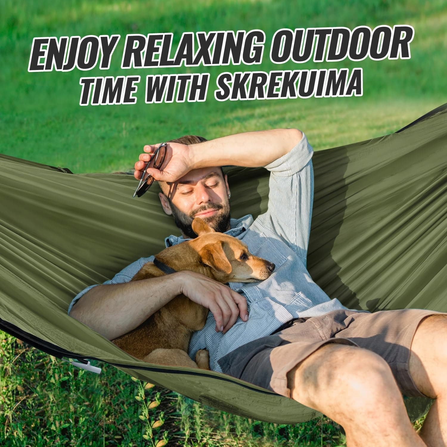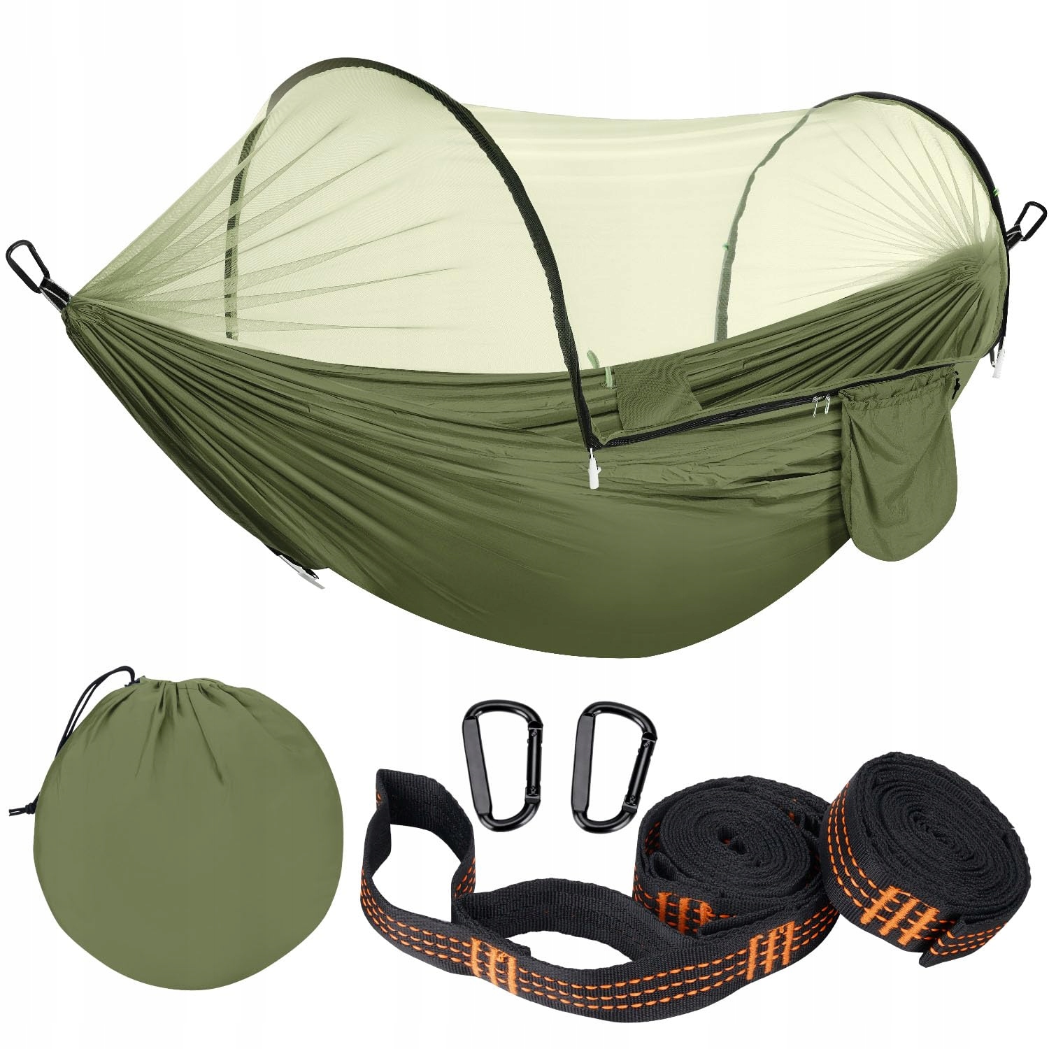 LEKKI I PRZENOŚNY: Hamak campingowy wykonany z ultralekkiej tkaniny nylonowej spadochronowej. Hamak podróżny zaprojektowany z klamrami na siatce. Gdy złożysz hamak outdoorowy z moskitierą, zgnij stojak w koło i przymocuj końce, a następnie łatwo włóż go do dołączonej małej torby, niezwykle łatwy do przenoszenia, hamak łatwo mieści się w plecaku lub można go po prostu zawiesić, idealny dla osób, które lubią podróżować z lekkim bagażem.