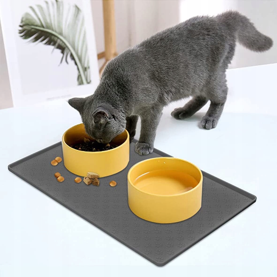 UMTITI Mata Pod Miskę Dla Psa Kota 60x40cm Wodoodporna Silikonowa Szara | Premium Supply