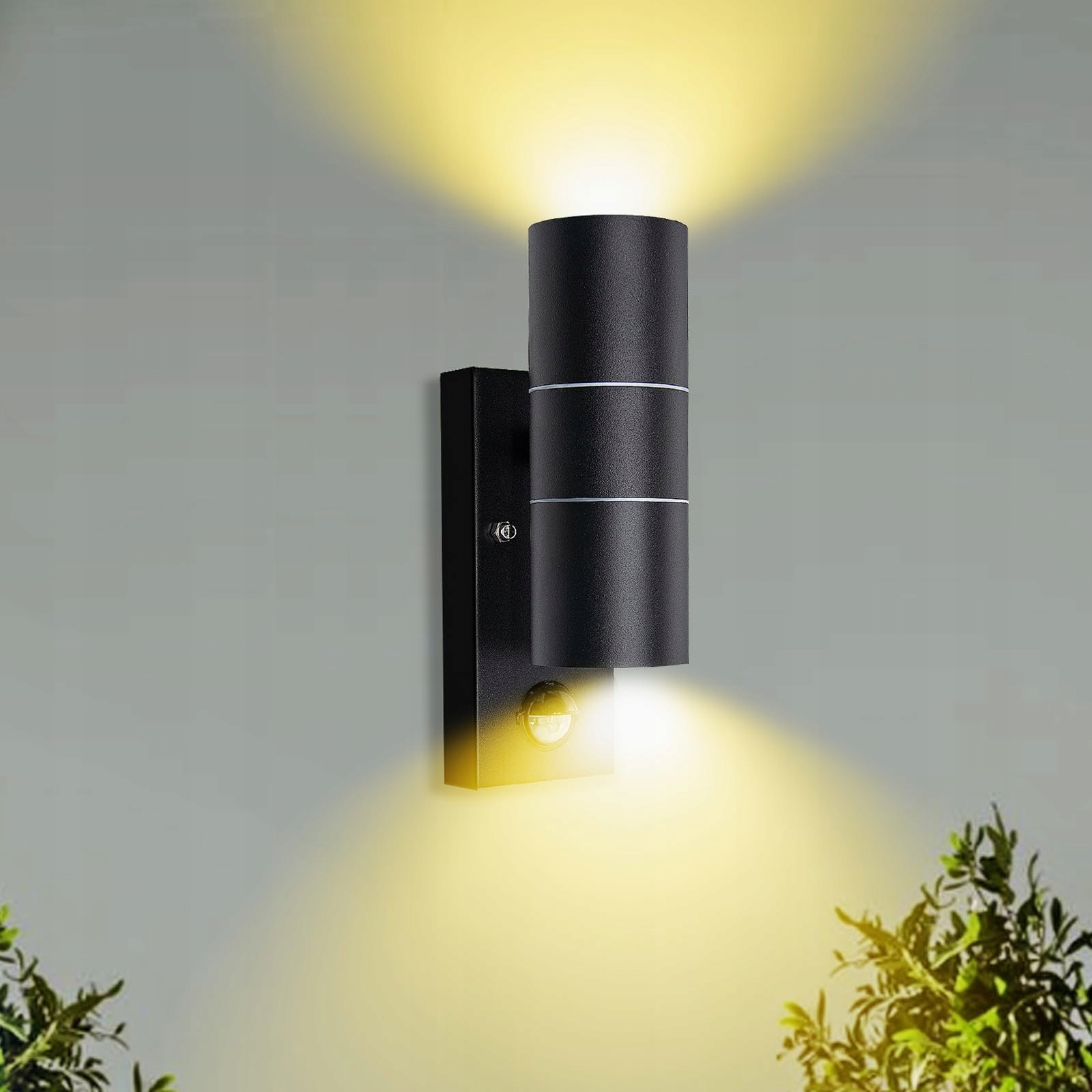 Unikcst Lampa zewnętrzna z czujnikiem ruchu LED GU10 Lampa ścienna antracyt IP44 nowoczesna lampa wejściowa góra-dół 230V w zestawie 2x 5W ciepłe białe źródła światła, 1 sztuka