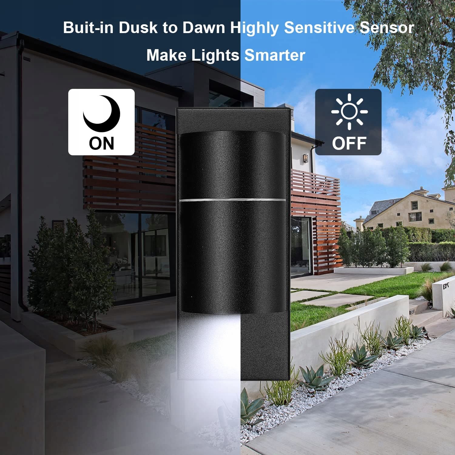 【Wbudowany czujnik zmierzchu】Praktyczny i czuły czujnik zmierzchu pozwala kinkietowi zewnętrznemu automatycznie działać w nocy i wyłączać się w ciągu dnia. Nie musisz przełączać ręcznie. Możesz mieć wolne ręce, aby znaleźć klucz do domu.