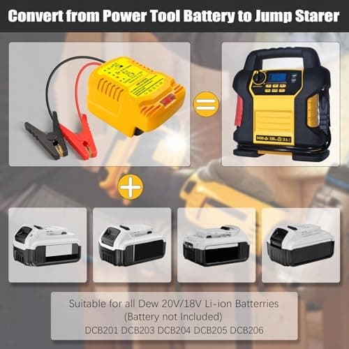 Kompatybilny z akumulatorami Dewalt 20V:odpowiedni dla akumulatorów Dewalt 20V DCB200 DCB201 DCB203 DCB204 DCB205 DCB206 DCB207 DCB181-XJ DCB181 DCB180 N123283 N123282 DCB201-2 DCB606-2 DCB609-2 itd. Dzięki adapterowi rozruchowemu możesz szybko i efektywnie uruchomić swój pojazd.
