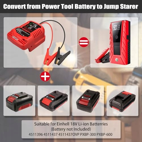 Adapter rozruchowy do akumulatora samochodowego kompatybilny z akumulatorem Einhell Power X-Change 18V, adapter rozruchowy do akumulatora dla silników benzynowych do 3,5L lub diesla do 3,5L z kablem rozruchowym 11AWG