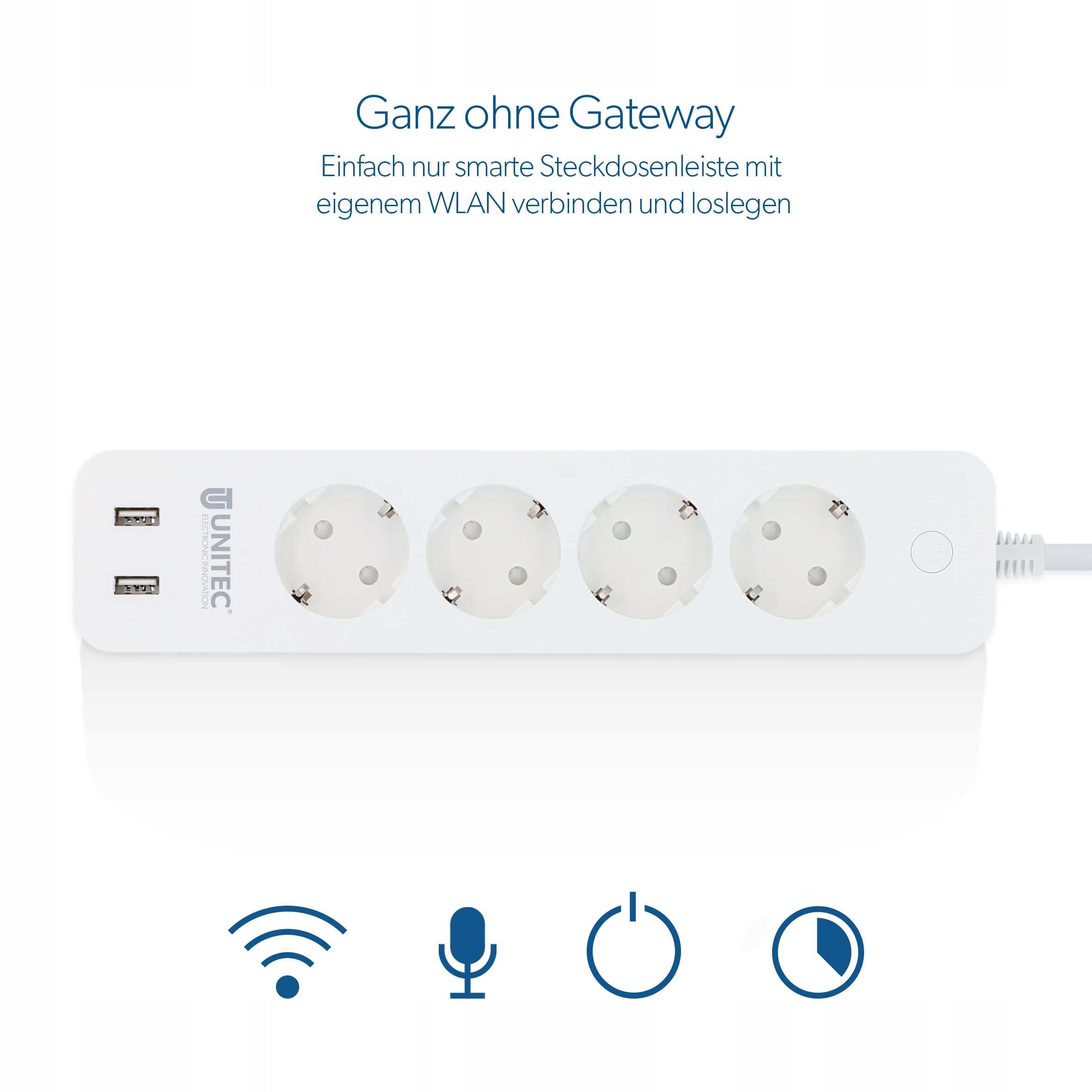 UNITEC 30798 WIFI Listwa zasilająca 4x2 | Smart gniazdka WLAN z timerem | Pomiar kosztów energii | Sterowanie głosowe i aplikacja | Z 2 wyjściami USB