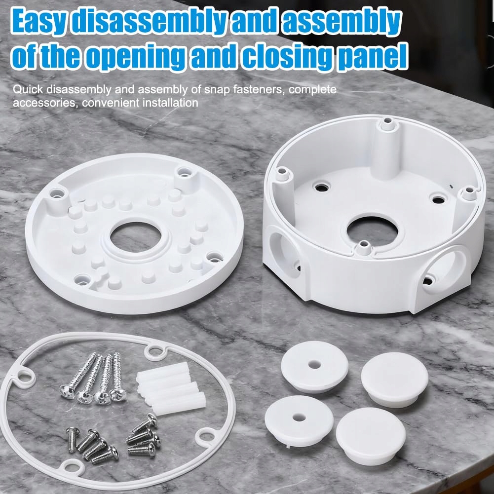 Solidna konstrukcja: Wykonana z trwałego materiału ABS, ta puszka przyłączeniowa do kamer jest stabilna i odporna na rdzę, skutecznie chroni kamery wewnętrzne i zewnętrzne przed deszczem i kurzem, co zapewnia długotrwałą trwałość