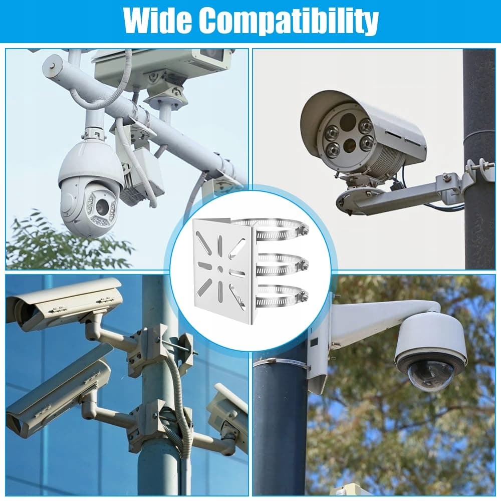 Szeroka kompatybilność: uchwyt do kamery monitoringu montowanej na maszcie kompatybilny z uchwytami do kamer kopułkowych, uniwersalnymi przegubami typu 'dziób kaczki', uchwytami do kamer typu bullet, uniwersalnymi uchwytami typu 'dziób kaczki', trójwymiarowymi przegubami uniwersalnymi i wieloma innymi. odpowiedni do kamer monitoringu, kamer IP, kolektorów słonecznych, lamp LED oraz różnych innych urządzeń.