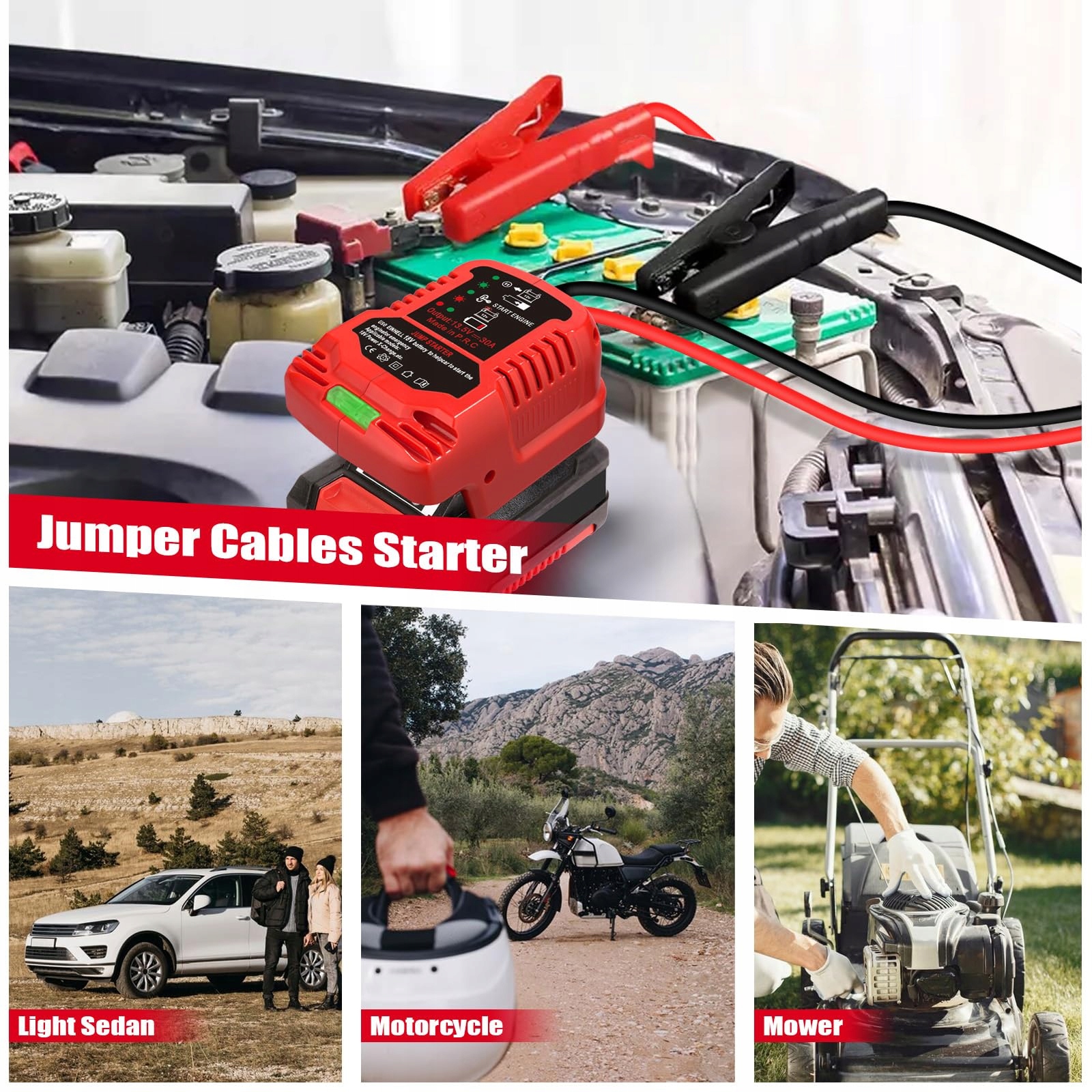 Łatwa obsługa:Aby użyć rozrusznika, najpierw mocno podłącz adapter kabla rozruchowego do swojej baterii Ein.hell 18V, następnie przymocuj czerwony zacisk do bieguna dodatniego (+) pojazdu, a czarny zacisk do bieguna ujemnego (-). Następnie uruchom samochód i usuń zaciski.