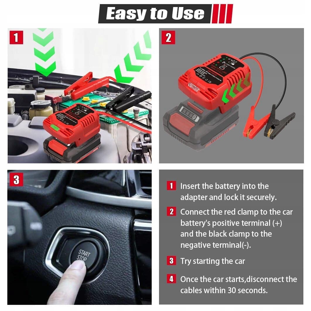 Adapter do rozruchu samochodu Powerbank dla akumulatora Einhell 18V, rozrusznik samochodowy z kablem 11AWG, bezpieczny rozrusznik samochodowy (akumulator nie jest w zestawie)