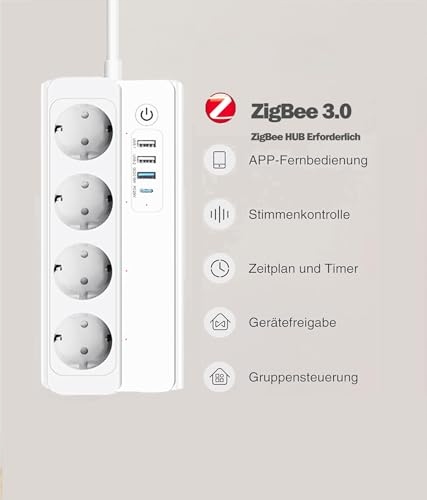 UseeLinkUSB C Power Strip 3xUSB 18W 1xUSB C 20W 16A, Needs ZigBee Hub
