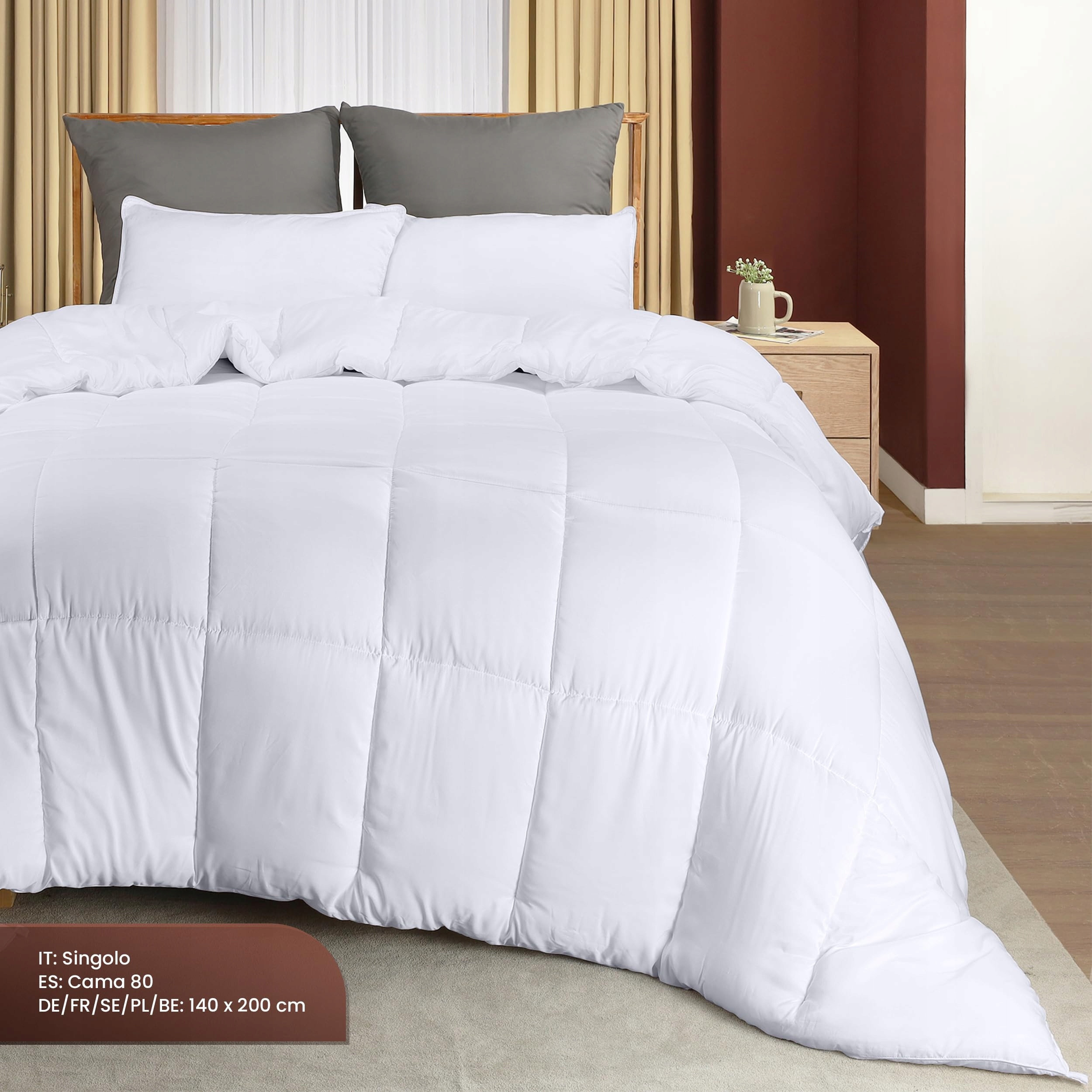 Kołdra waży 280 GSM z wypełnieniem z poliestru, silikonizowana włóknina pusta