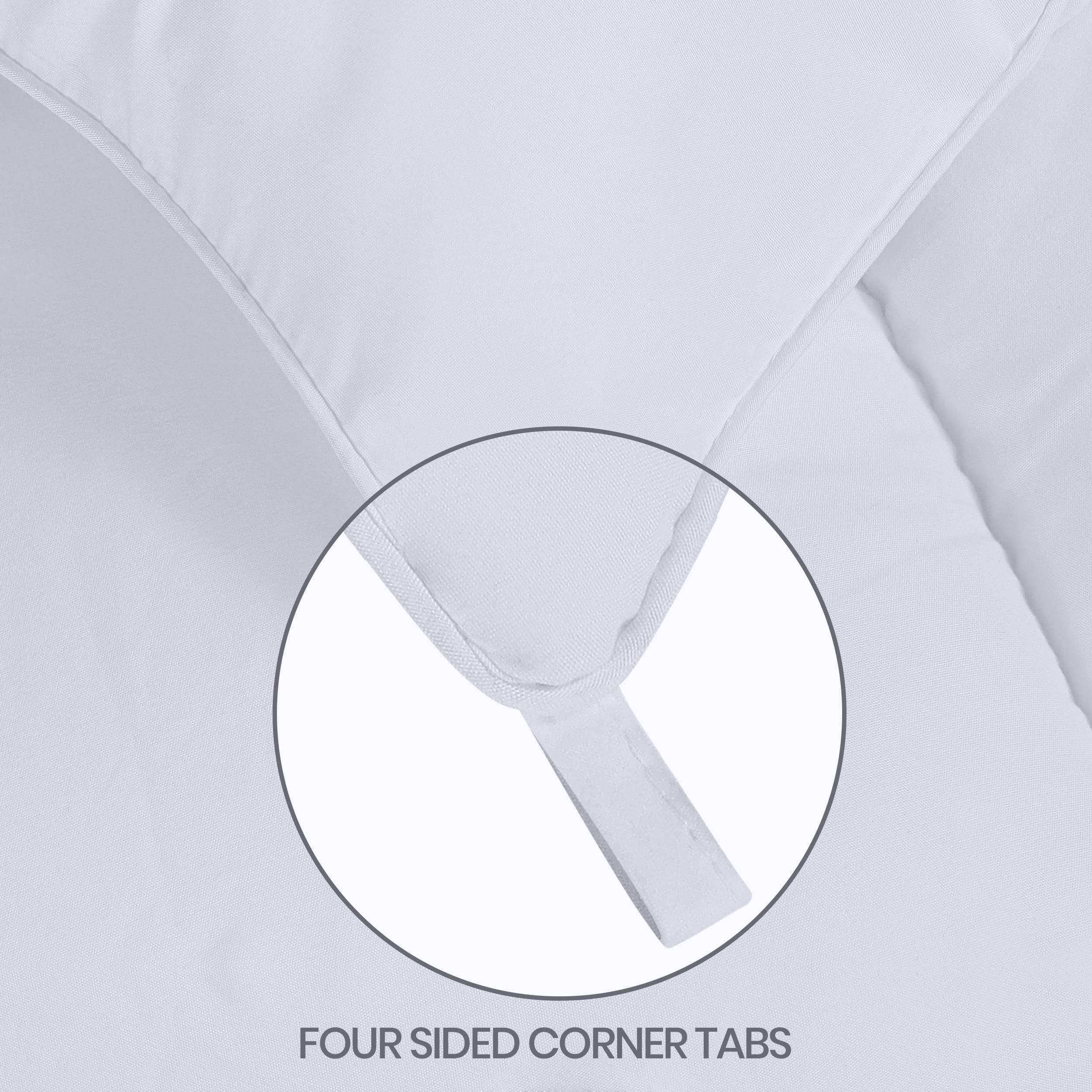 Cztery pętelki na rogach ułatwiają założenie każdej poszewki na kołdrę i utrzymują kołdrę na miejscu