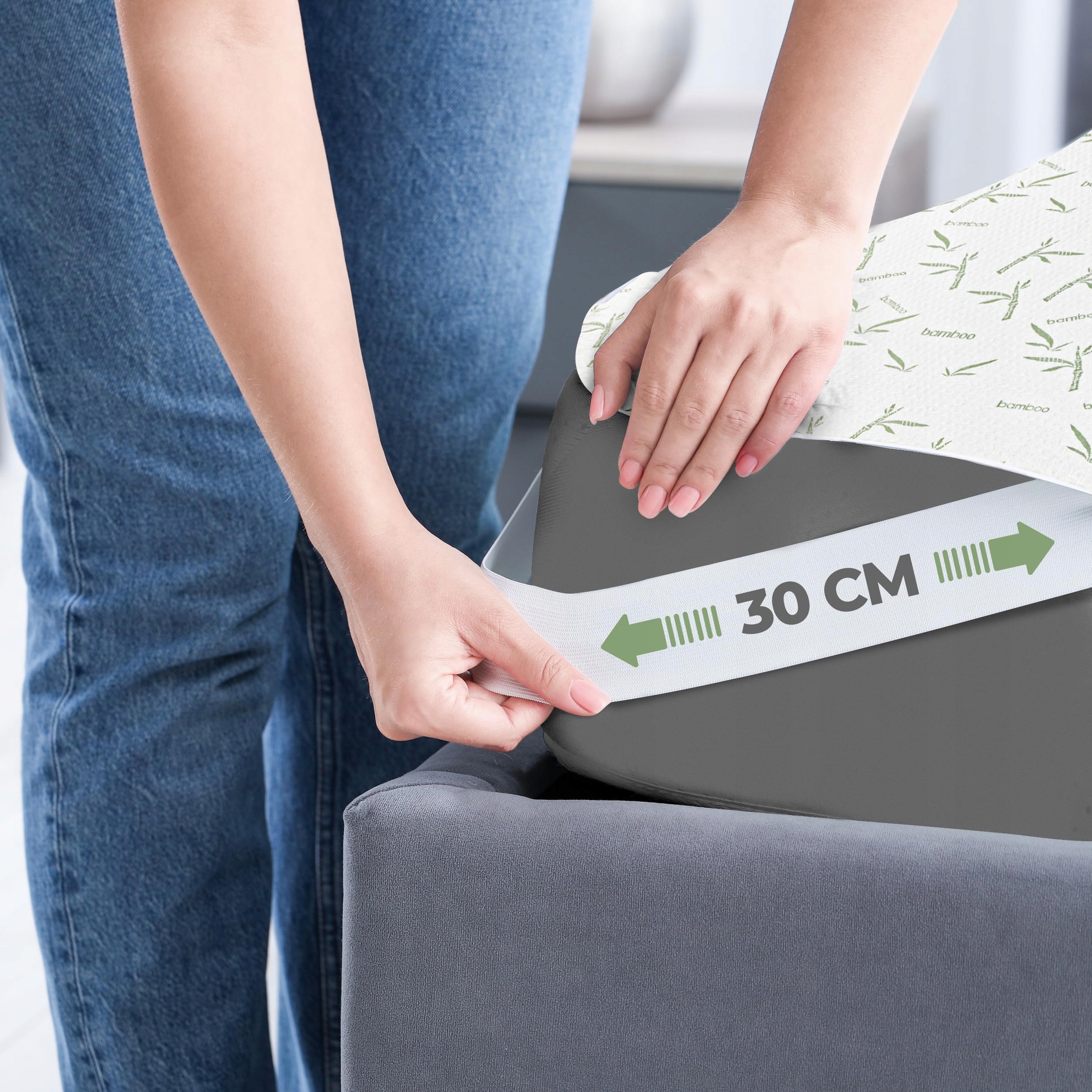 Design prześcieradła: Ta wiskozowa ochrona materaca ma wymiary 180 x 200 cm i jest odpowiednia dla materacy o głębokości do 30 cm.