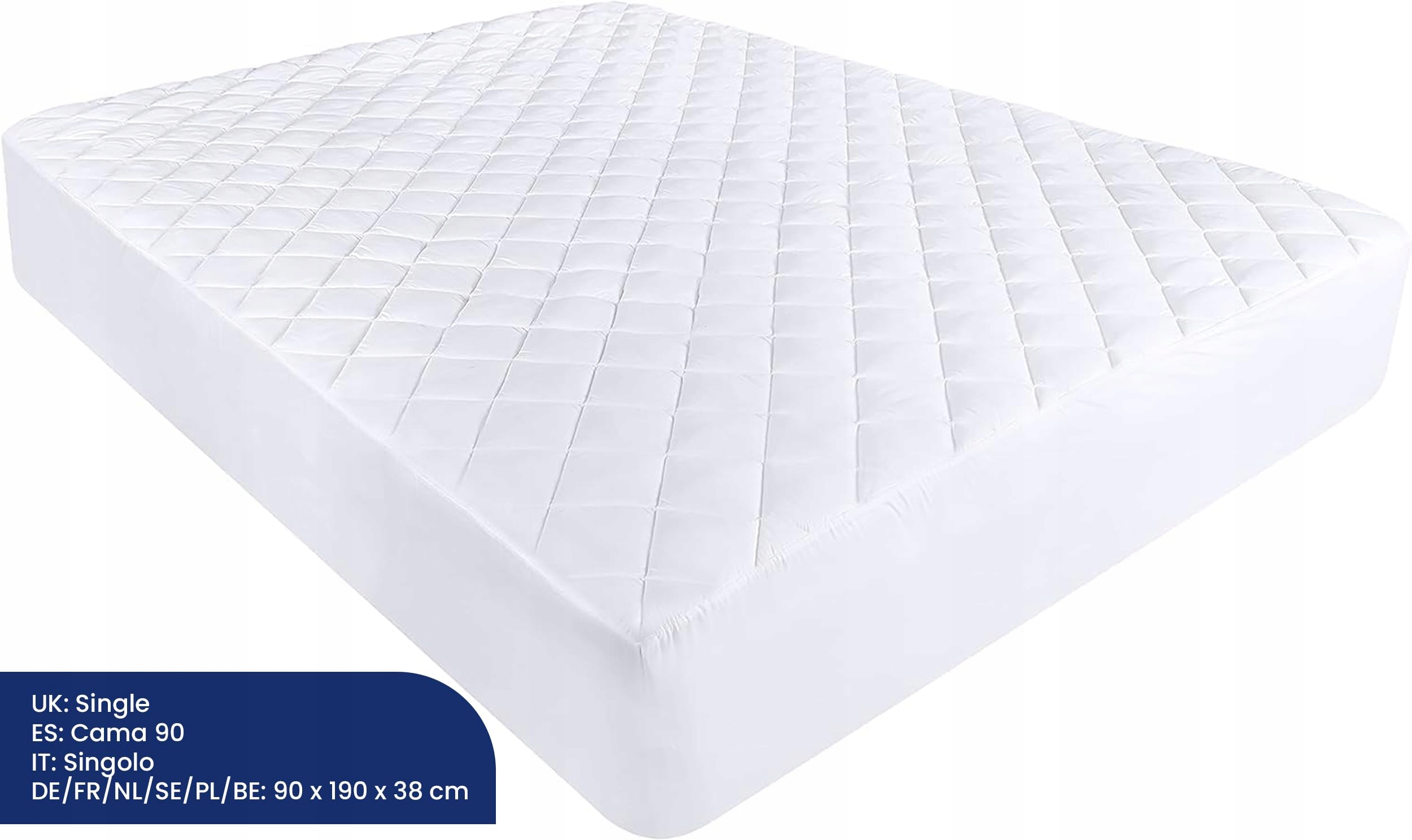 Rozmiar i dopasowanie: Pikowany ochraniacz na materac ma wymiary 90 x 190 cm. Rękaw rozciąga się, aby pasować na materac o głębokości 38 cm (Nie wodoodporny).