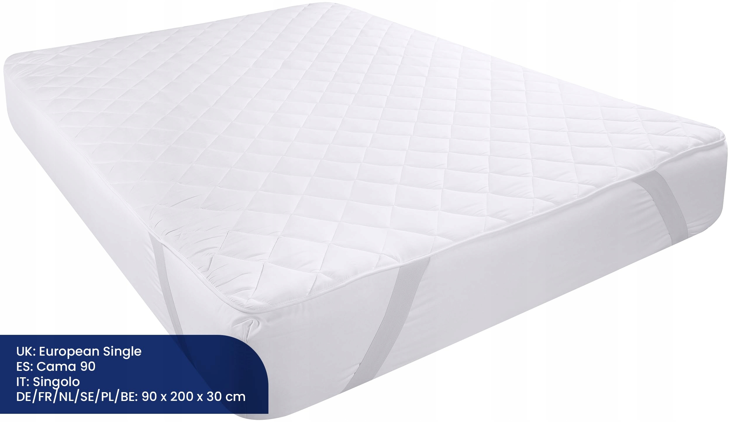 Rozmiar i dopasowanie - Pikowany ochraniacz na materac ma rozmiar 90 x 200 cm; elastyczna taśma rozciąga się do materaca o głębokości 30 cm (NIE WODOODPORNY)