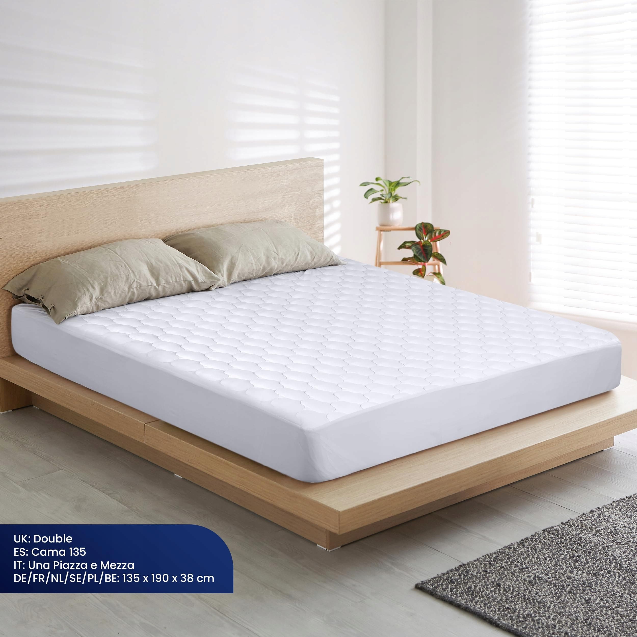 Rozmiar i wypełnienie: Steppana, wodoodporna ochraniacz na materac ma rozmiar 135 x 190 cm i głębokość 38 cm. Posiada wypełnienie 130 GSM.