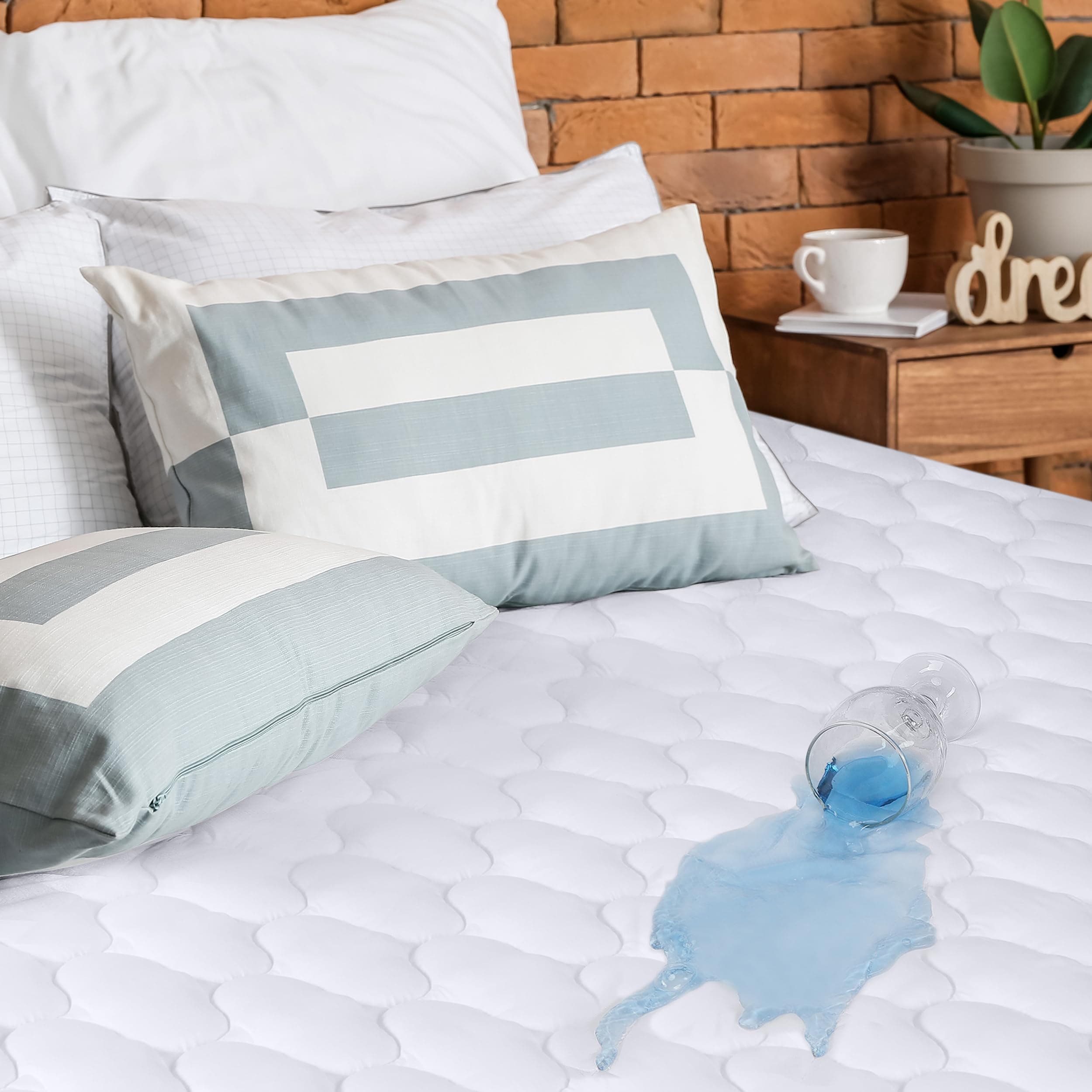 Wodoodporna ochrona: Nasza steppana nakładka na materac ma wodoodporną warstwę, która chroni Twój materac przed plamami i wilgocią.