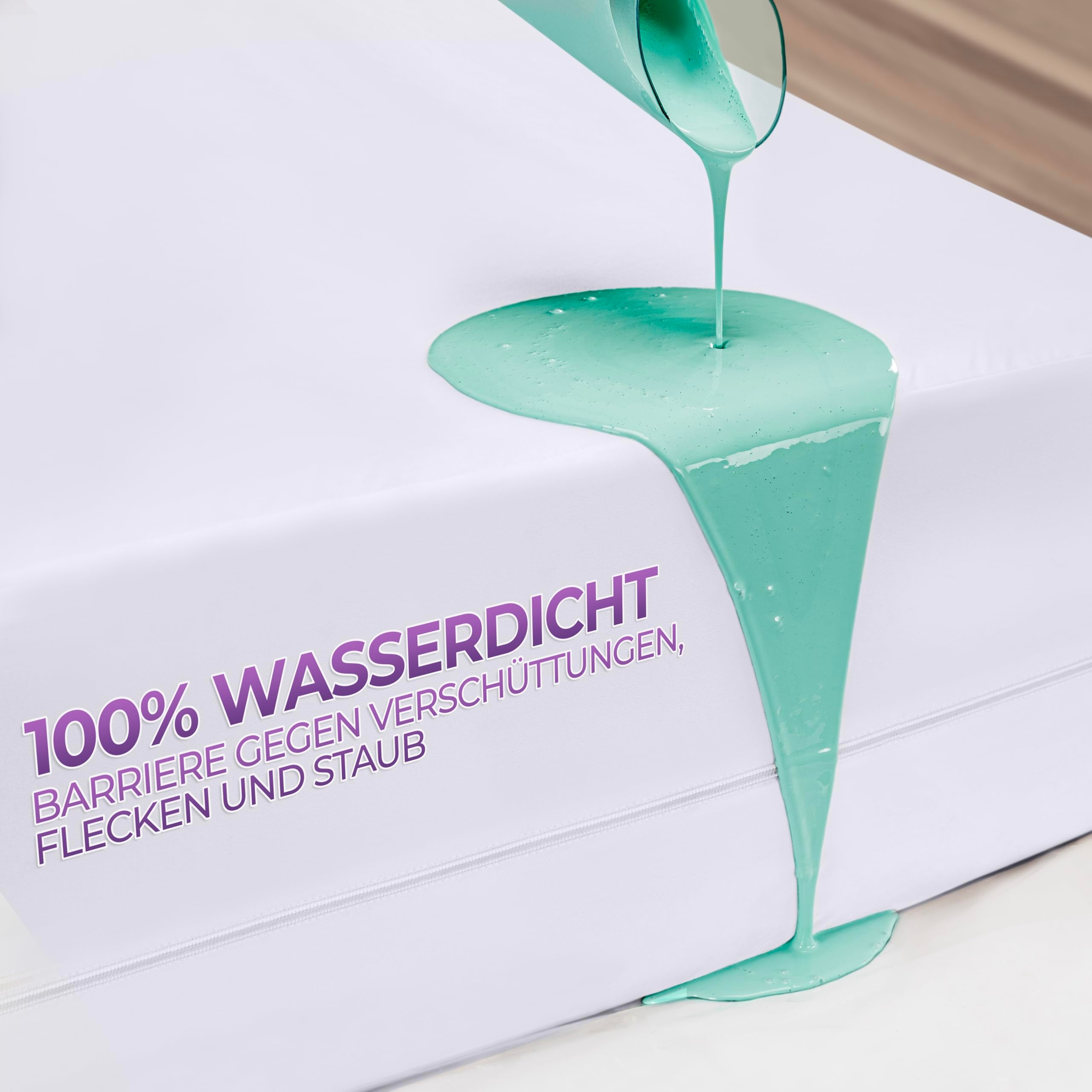 Wodoodporny i oddychający - Dzięki wytrzymałej membranie PU ten pokrowiec zapewnia niezawodną barierę przed cieczy, takimi jak rozlane płyny, pot i inne płyny, jednocześnie gwarantując oddychalność dla przyjemnego klimatu snu.