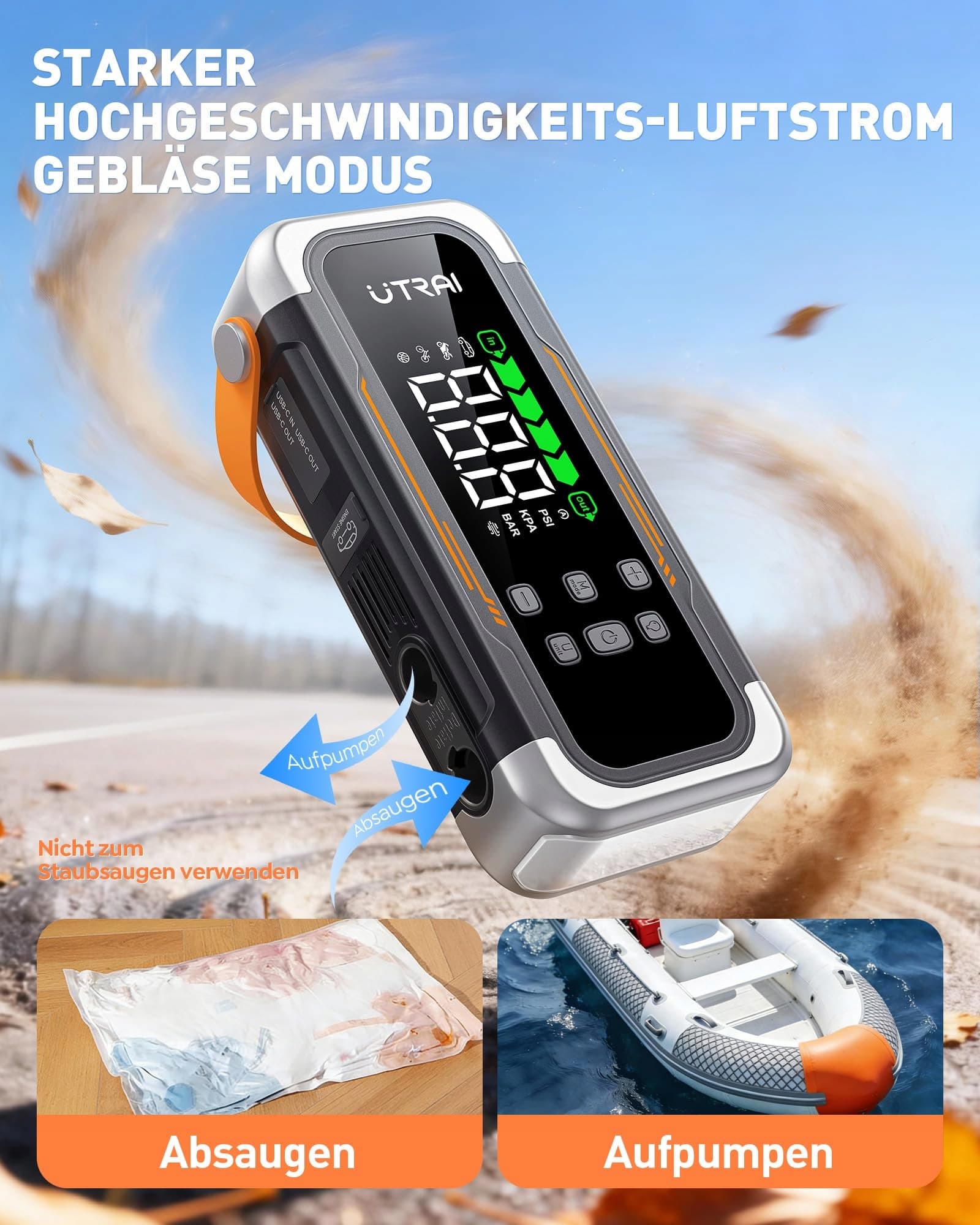 UTRAI Powerbank Rozruchowa z Kompresorem 6000A do Samochodów Benzyna Diesel