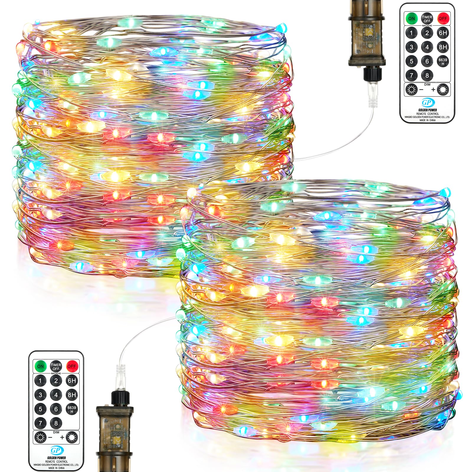 LED łańcuch świetlny wewnętrzny, 23M 200 LED łańcuchy świetlne z zasilaniem sieciowym, wodoodporny timer 8 programów na zewnątrz i wewnątrz, Boże Narodzenie, wesele, Halloween, pokój, dekoracja imprezowa (2 sztuki, kolorowe)