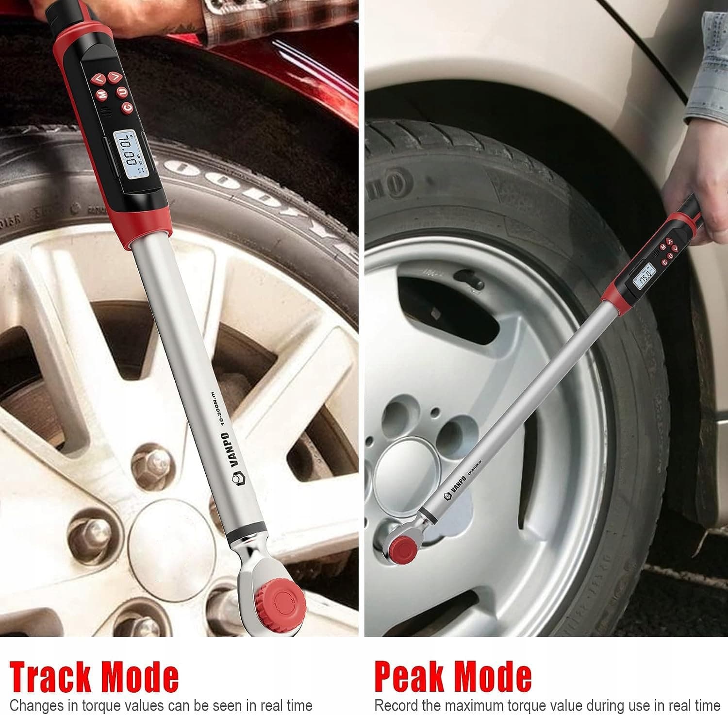 【Tryb pamięci】Ten klucz dynamometryczny 1/2 cala oferuje tryby Track i Peak. W trybie Track można wywierać zrównoważoną siłę, zmieniając wartość. W trybie Peak wartość momentu obrotowego jest rejestrowana w celu weryfikacji w dowolnym momencie.