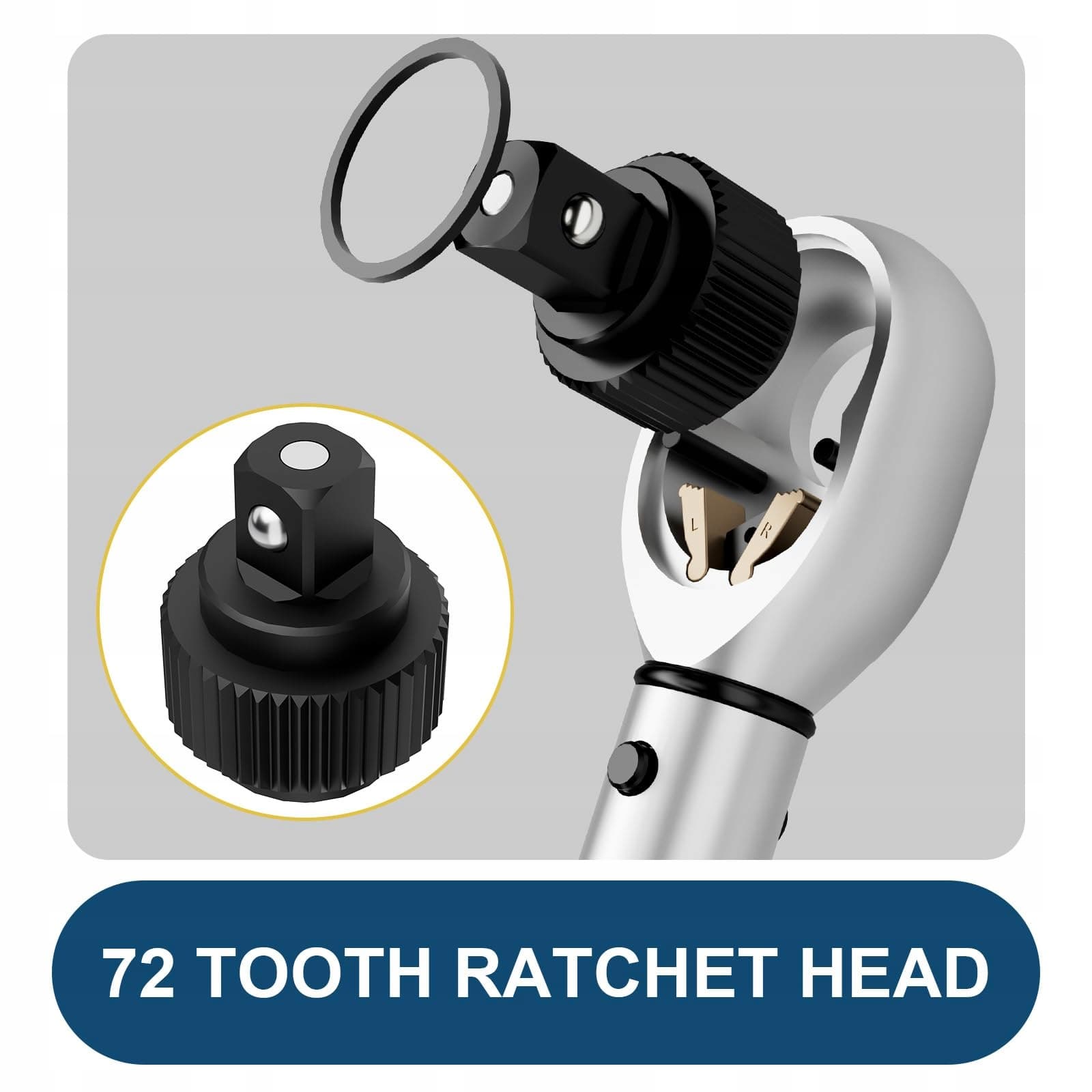 【Bezpieczny i niezawodny】 Gdy klucz dynamometryczny 1/2 osiągnie ustawioną wartość momentu obrotowego, wydaje wyraźny dźwięk „klik”, któremu towarzyszy wyraźna wibracja w ręce, przypominająca o zaprzestaniu aplikowania siły, aby uniknąć uszkodzeń. Posiada przełączalną głowicę zębatą z 72 zębami, która nadaje się zarówno do zastosowań zgodnych, jak i przeciwnych do ruchu wskazówek zegara.