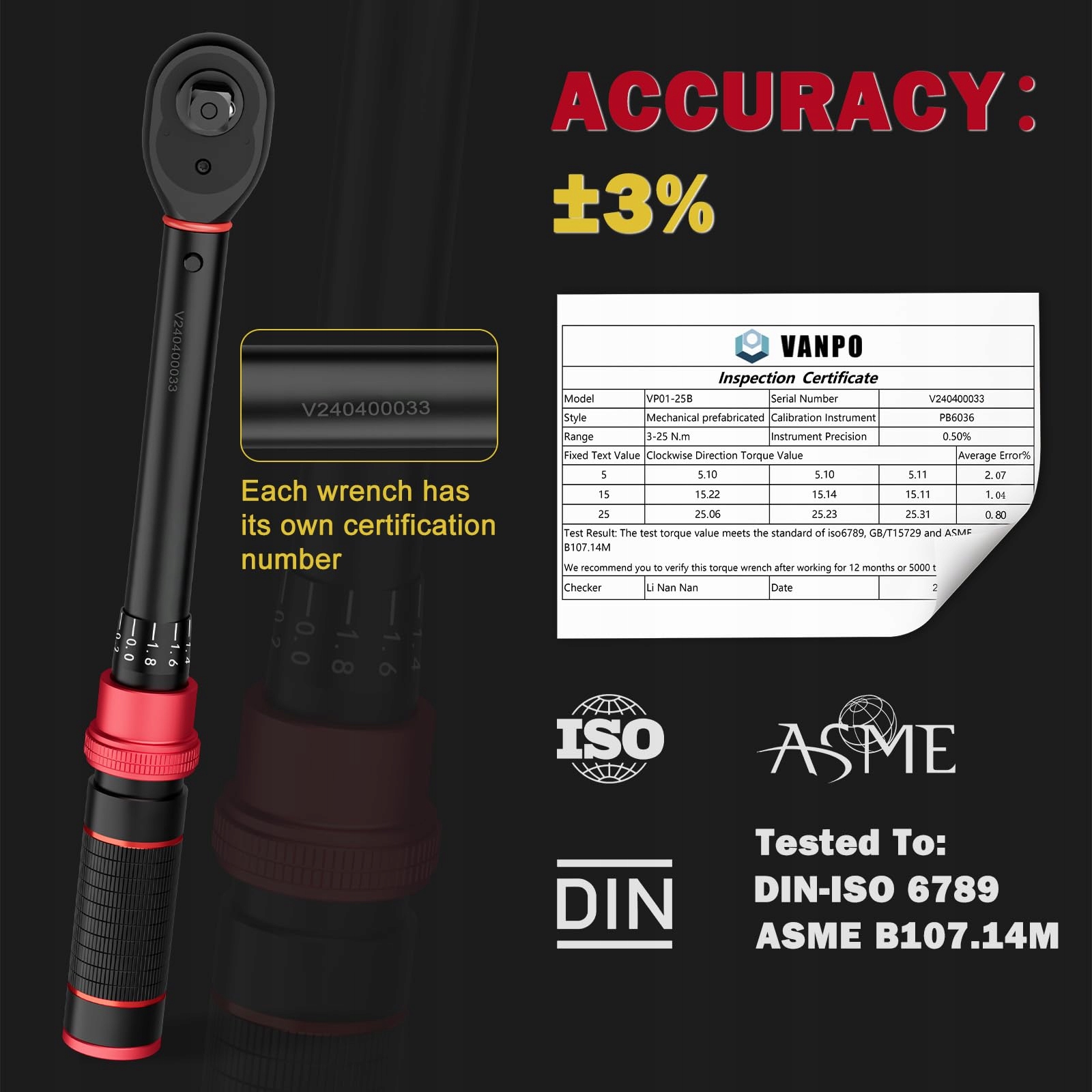 VANPO Klucz Dynamometryczny 3-25Nm Zestaw Do Rowerów i Motocykli | Premium Supply