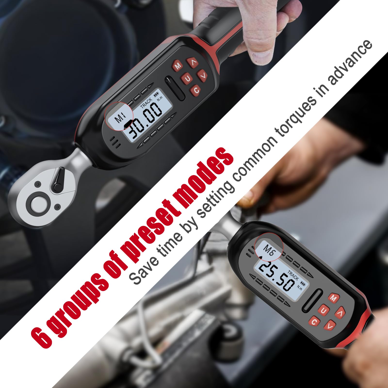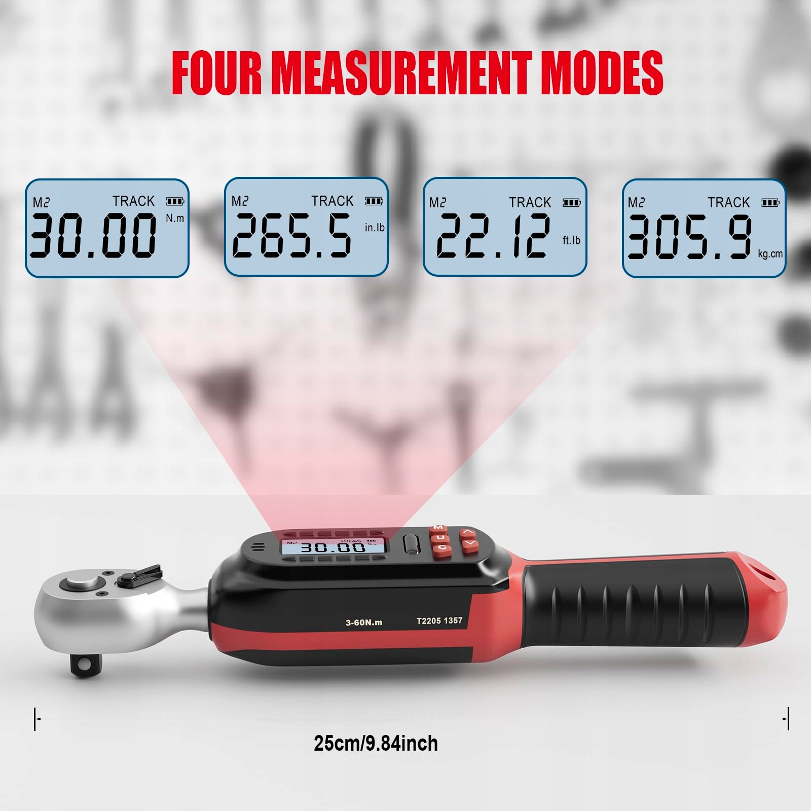 【Tryby pomiaru】Klucz dynamometryczny 1/4 cala ma cztery tryby pomiaru. Musisz tylko obsługiwać przyciski, a wartości konwersji między jednostkami możesz wyraźnie zobaczyć na wyświetlaczu, co jest dokładniejsze i wygodniejsze niż mechaniczny klucz.