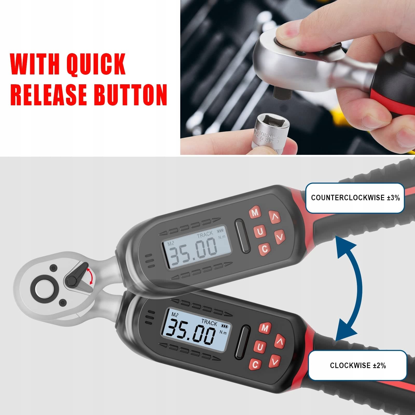 【Funkcja szybkiego zwalniania】Ten klucz dynamometryczny do motocykli ma funkcję dwukierunkowego mechanizmu zapadkowego, a dokładność w kierunku zgodnym z ruchem wskazówek zegara może osiągnąć ±2%. Możesz szybko wymieniać akcesoria dzięki projektowi szybkiego zwalniania, unikając zacięcia części i oszczędzając wysiłek.